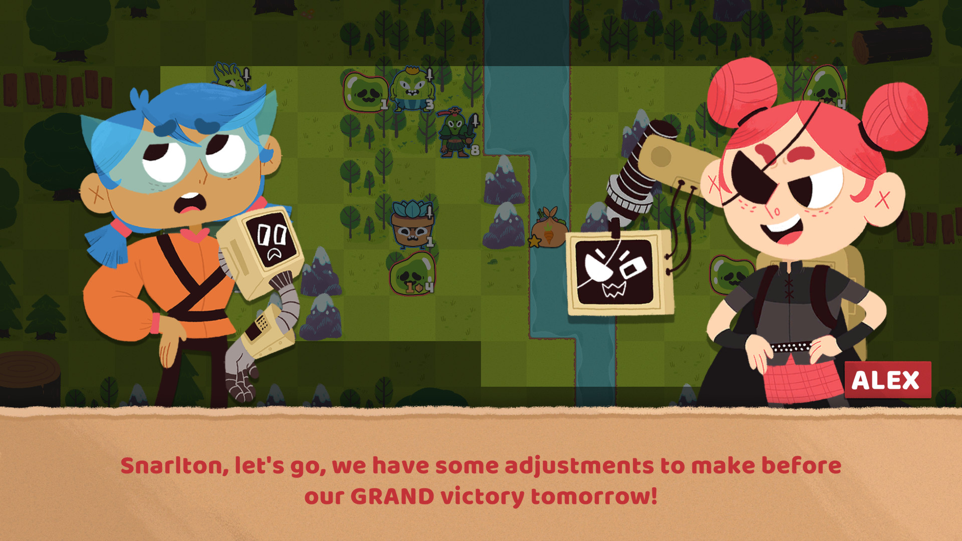 Meet the Floppy Knights: tangible projections summoned from floppy disks! Tactics fuse with card game mechanics as Phoebe and Carlton - a brilliant young inventor & her robot-arm bestie - square off in turn-based battles. Select your Knights, hone your dec