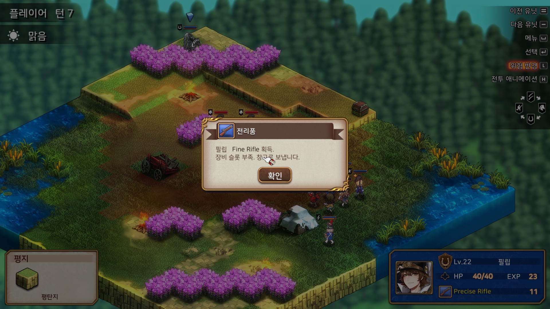 왜냐하면 적들 레벨이 19이상이기 때문이죠. 그리고 초기 필드에 남아있는 적군을 다 쓸어버리면 바로 증원병력이 도착합니다. 여담으로 드제를 살릴 수도 있다던데, 저는 못살렸네요.