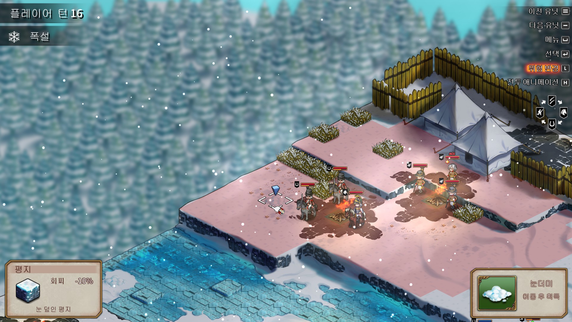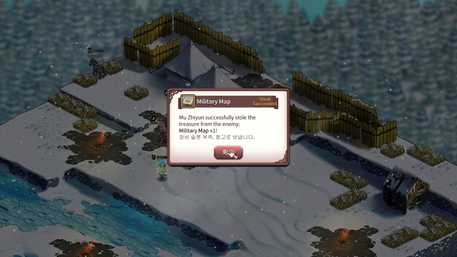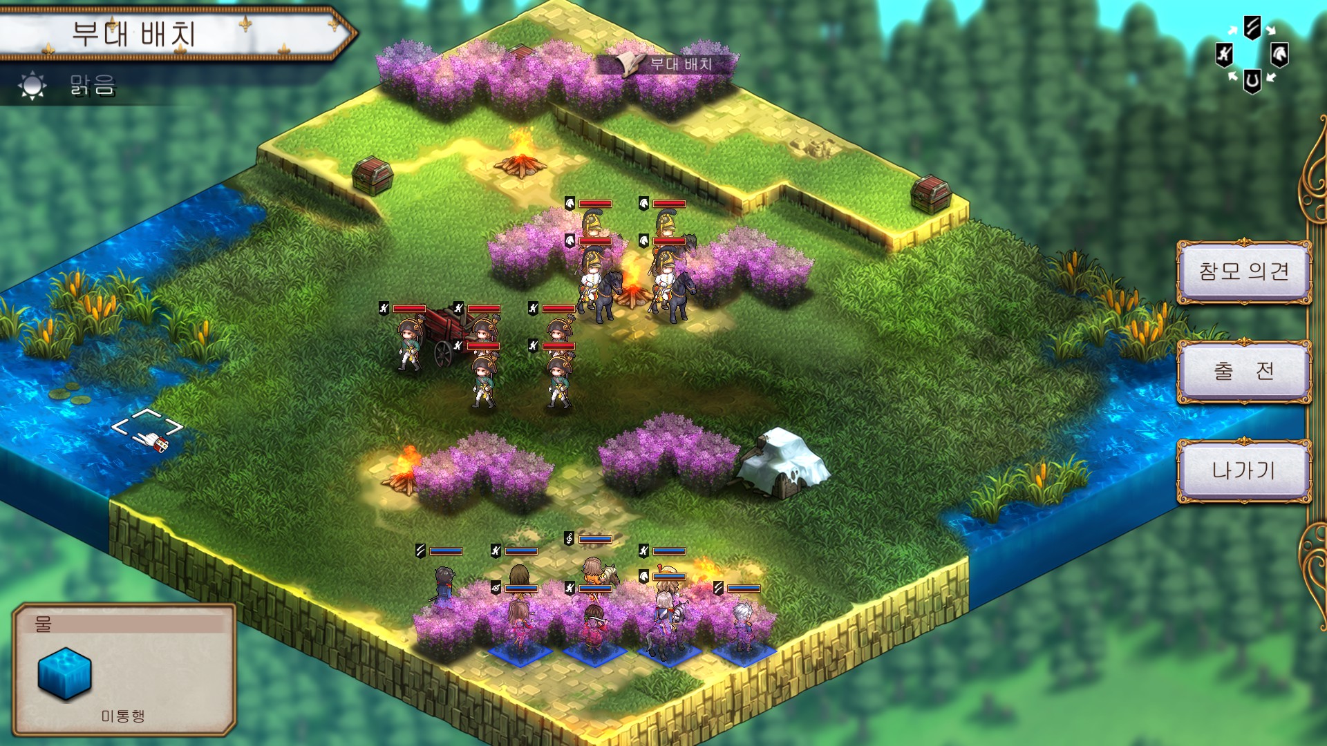 여기서 중요한 점은 적을 다 정리하는 순간 스샷에 보시다시피 맵 정가운데에 물웅덩이가 생기고, 최상단의 상자가 사라진다는겁니다. 물웅덩이쪽은 이동속도가 많이 느려지기때문에 그쪽에 에이미나 포병을 배치하는 실수를 하지 마세요.