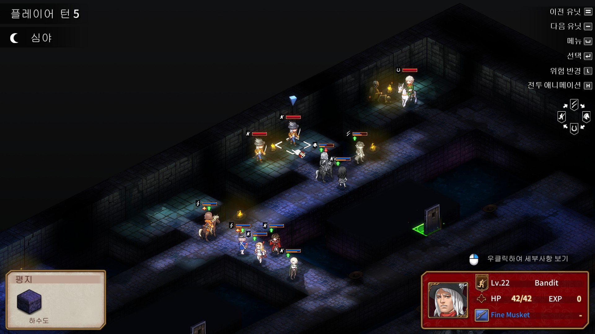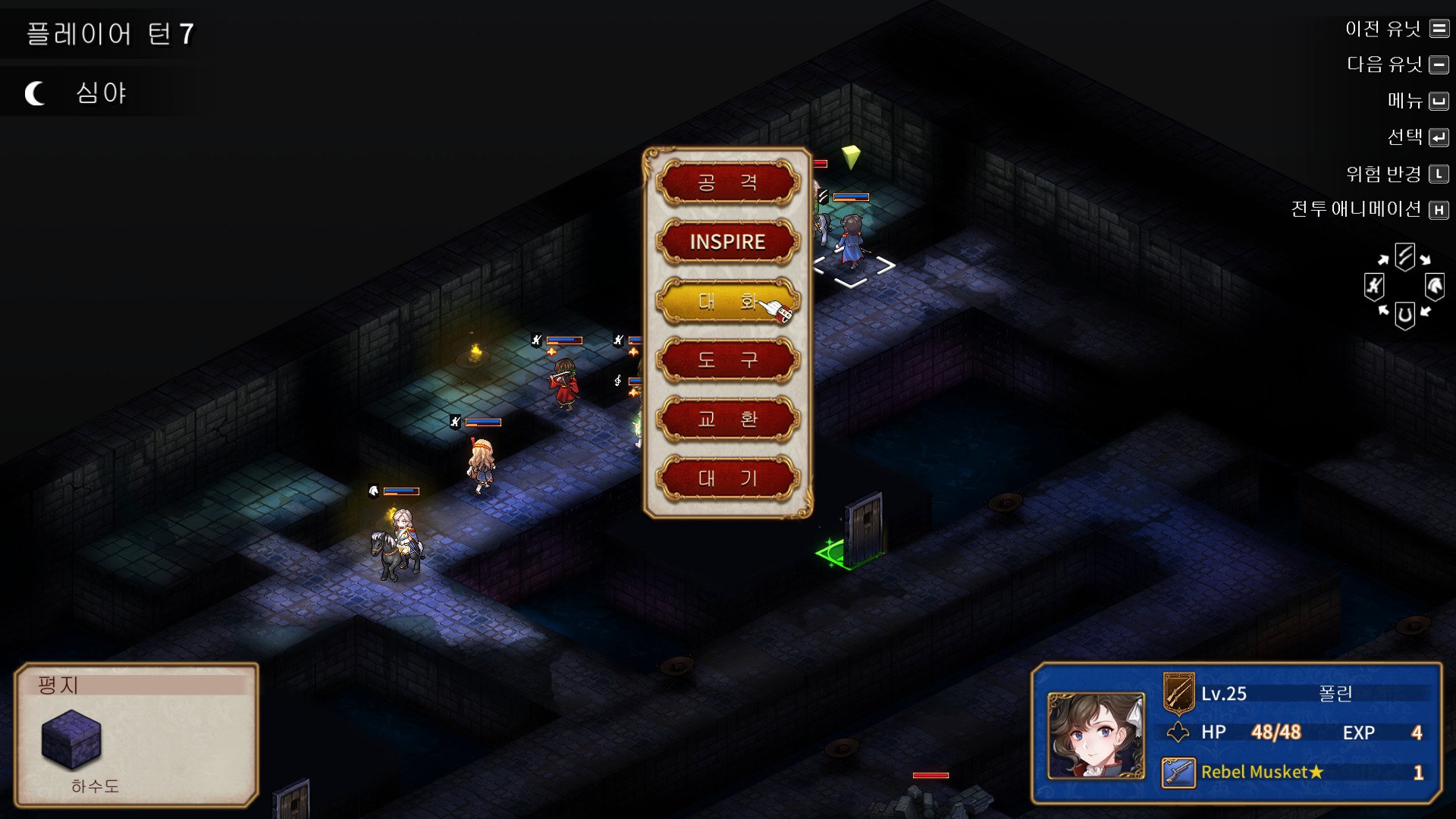 맵 구석탱이에 있는 르클레르는 기본적으로 적군 상태지만 에이미나 폴린으로 대화를 걸면 아군으로 합류시킬 수 있습니다. 패시브가 상당히 좋은 편인데(패시브 효과를 극대화할려면 르클레르로 선빵을 때려야 한다는게 단점이지만), 여담으로 르클레르의 패시브는 엔딩 보고 난 후에 도전할 수 있는 Sailor's Gossip 4에서 빛을 발합니다. ...라지만 제가 열번 넘게 꼴아박아봤는데, 르클레르와 상관없이 1회차에선 딜이 많이 모자랐습니다.