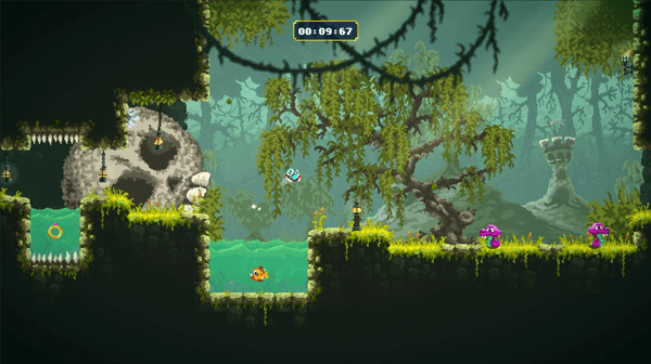 이 게임은 로프 클라이밍 및 벽 슬라이딩부터 높이뛰기, 워터 다이빙에 이르기까지 40개 이상의 수작업으로 제작된 플랫포밍의 장점을 자랑합니다. 러블롯 경은 숨을 정말 오래 참을 수 있습니다!