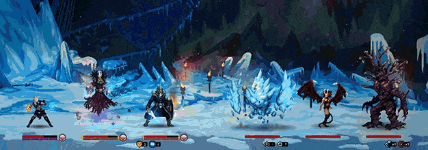 그다음에는 영웅들이 죽어가는 모습을 지켜보기만 하면 됩니다! 던전 크롤러에서 입장이 바뀐 거라고 생각하시면 됩니다. 영웅들은 당신의 던전에 기어들어 당신이 배치한 함정을 작동시킬 겁니다. 다수의 모험가들이 당신이 던전에 배치한 몬스터를 만나면 턴 기반 전투가 시작됩니다!