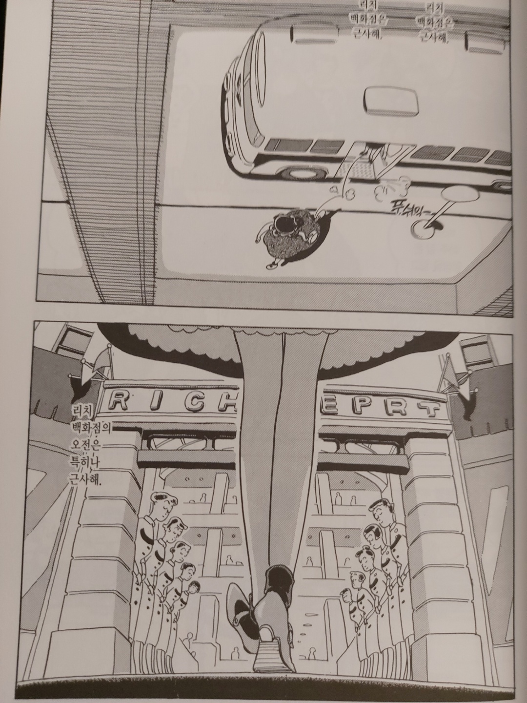 만화의 도입부는 뮤직 비디오의 인트로나 뮤지컬을 보는 듯한 느낌을 준다.