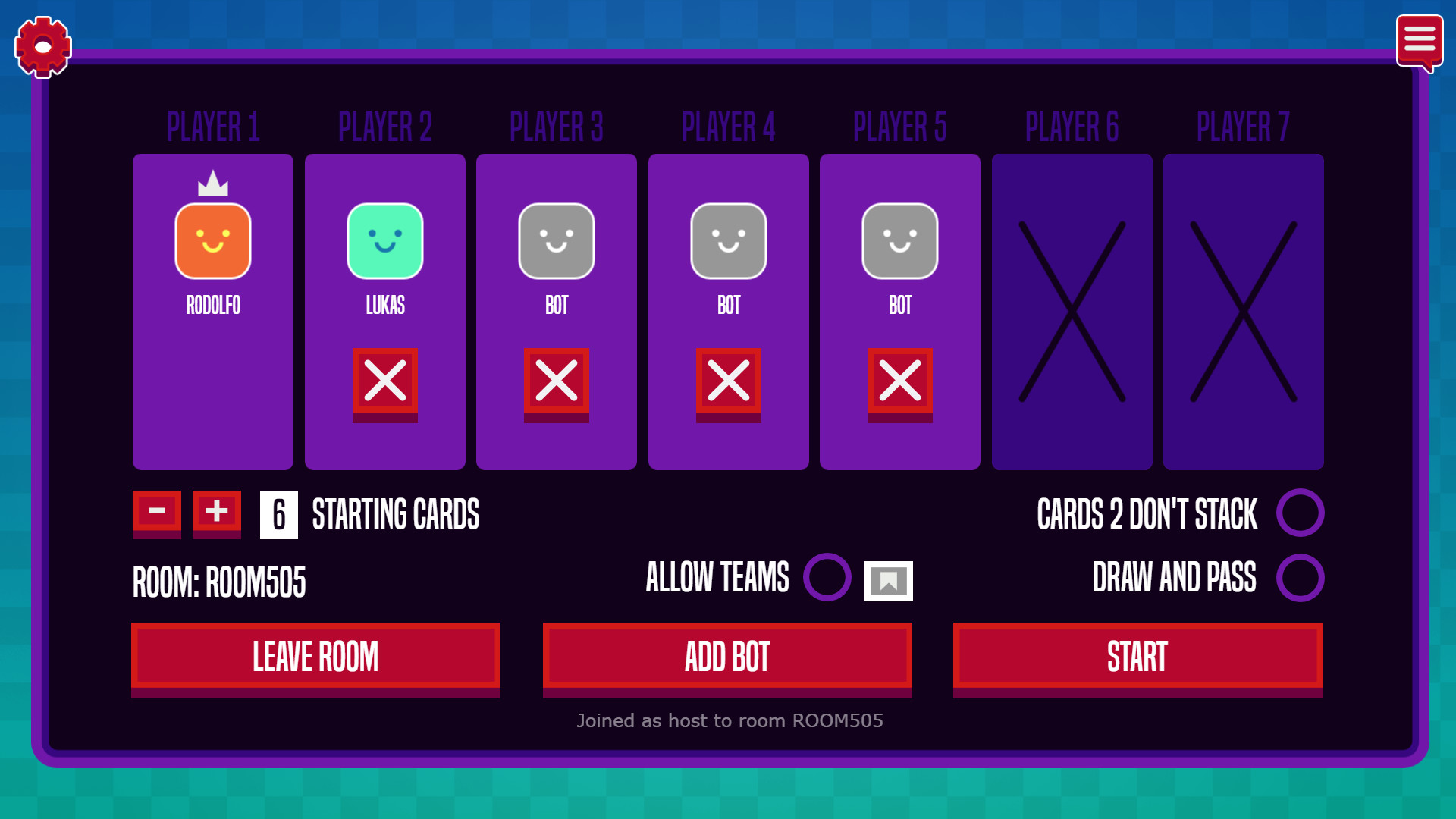 A simple and fun card game to play with friends! Discard suit, or the same number, and be the first to run out of cards.
