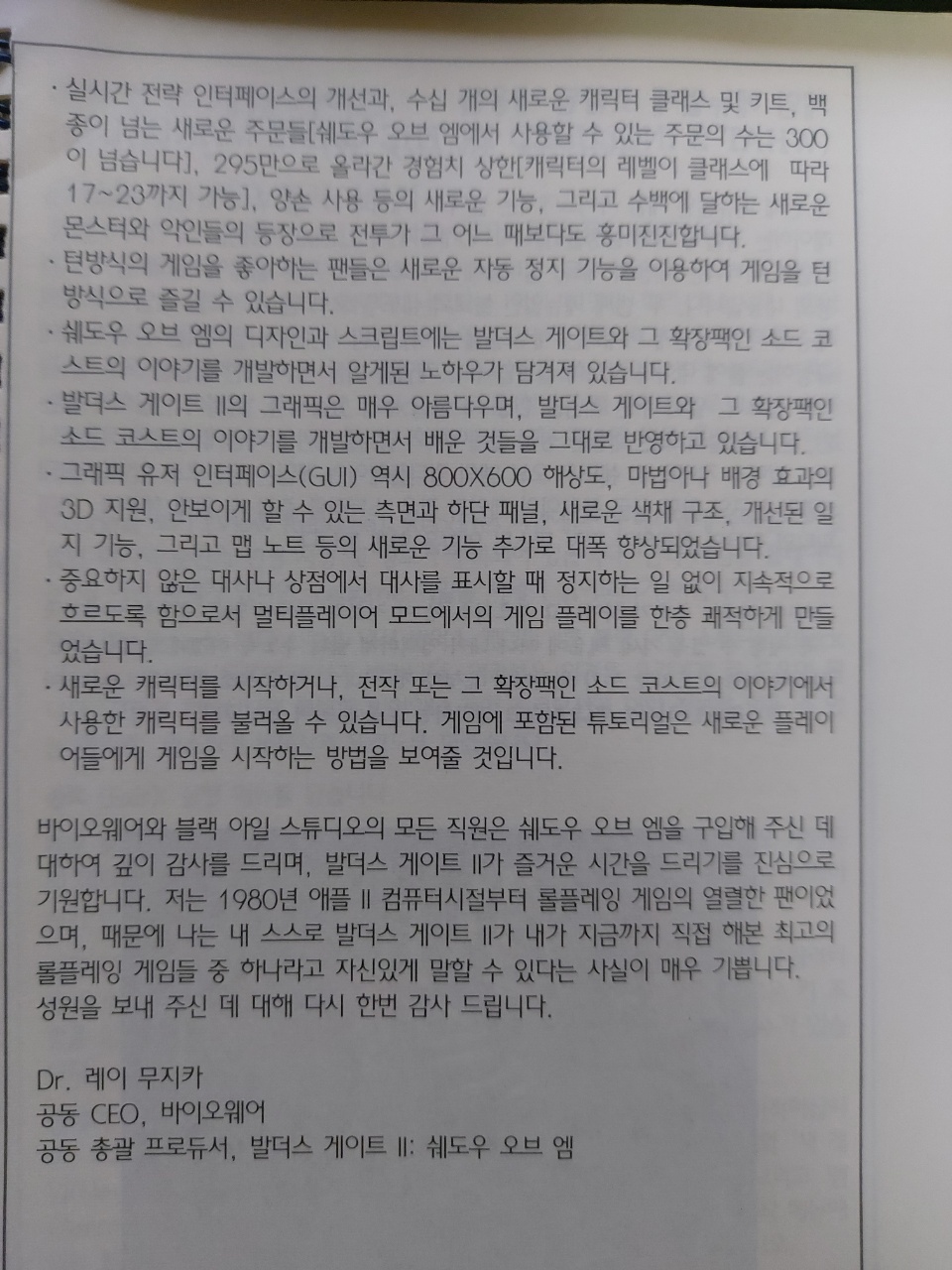 발더스 게이트2 메뉴얼 서문.