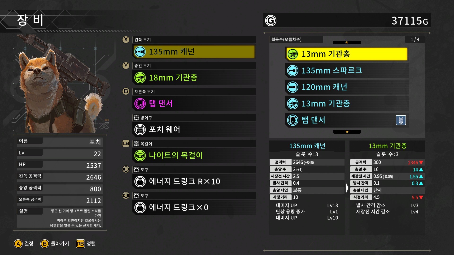 ・기관총: 위력은 약하지만, 연사속도와 재장전 속도가 빠릅니다.