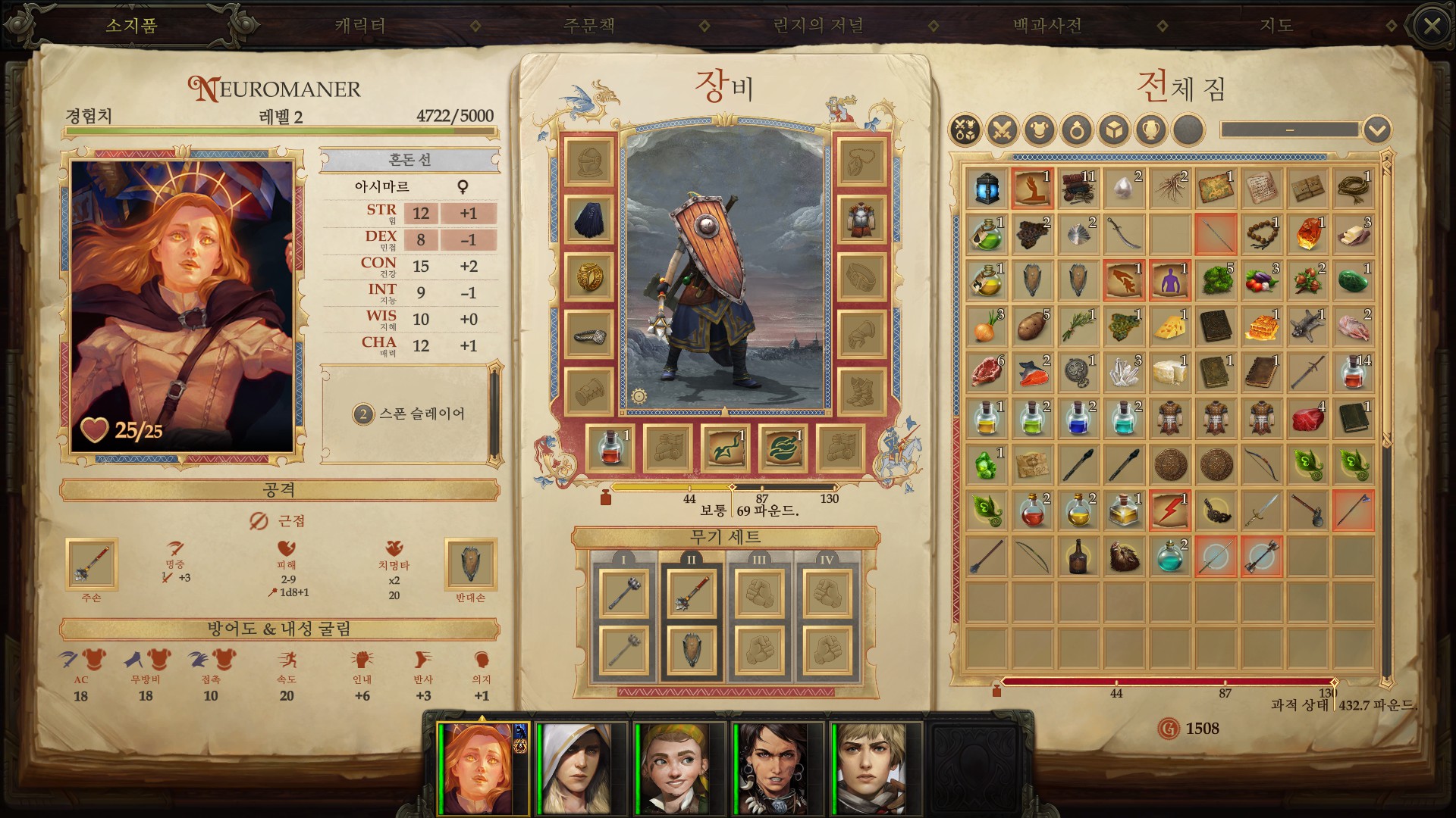 인벤토리의 압박. 별로 안들고 다니는것 같은데 자꾸 과적이 뜬다.