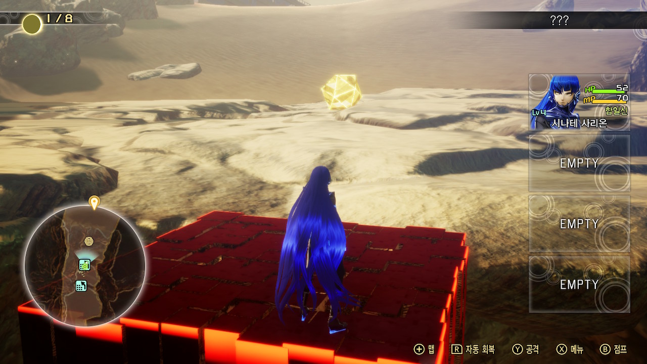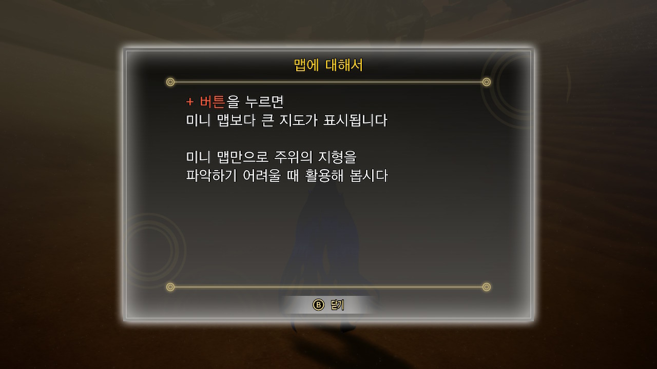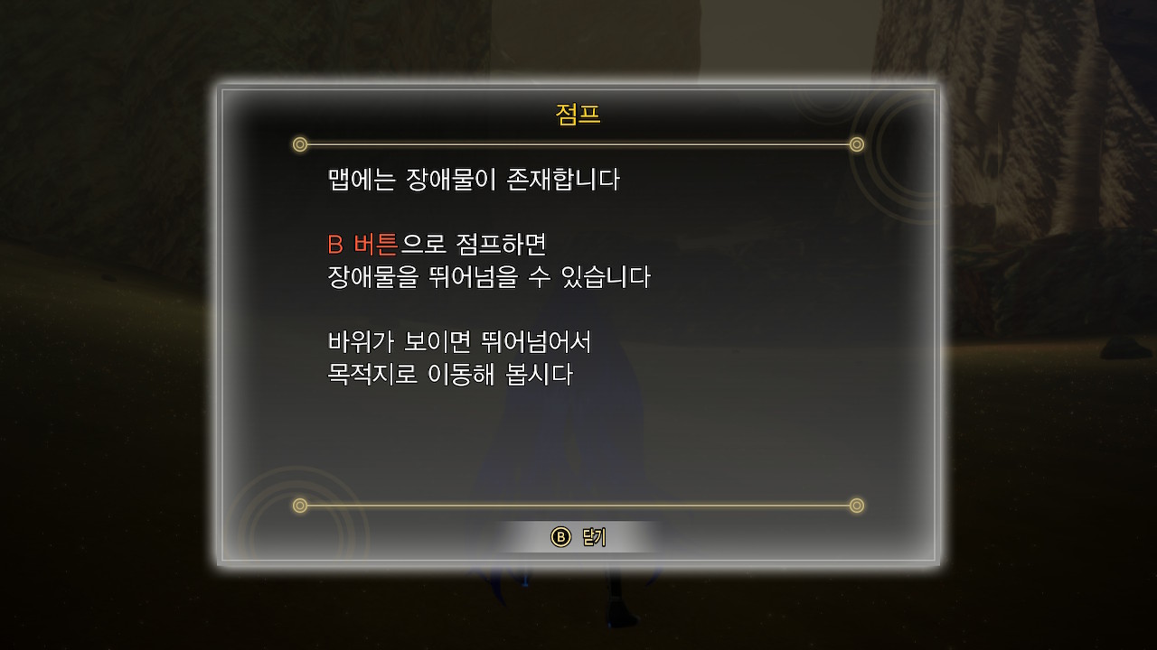 필드에서는 대쉬와 점프를 하면서 이동할 수 있고, 좌하단의 미니맵에 보이는 특수한 아이콘=필드에서 빨간색으로 보이는 구조물에서 B를 누르면 나호비노가 자동적으로 등반을 합니다.