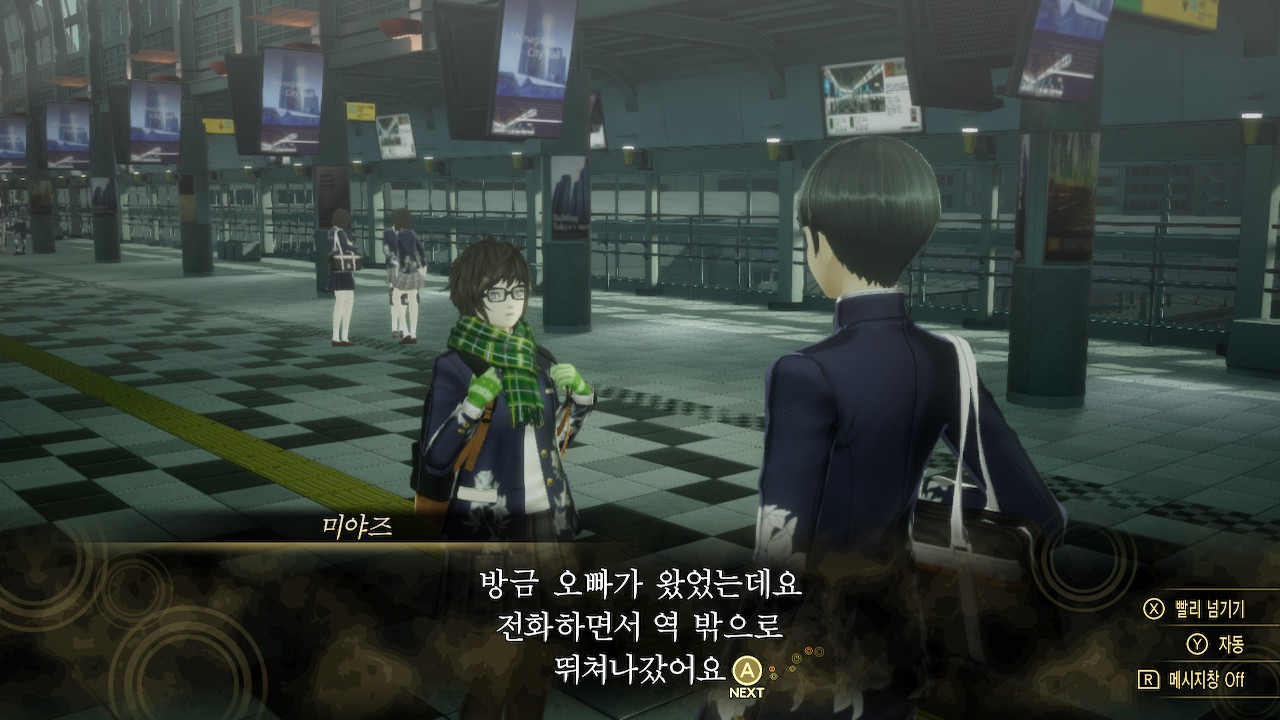 교실에서 npc몇명과 형식적인 대화를 한 후, 정해진 경로대로 이동을 합니다.