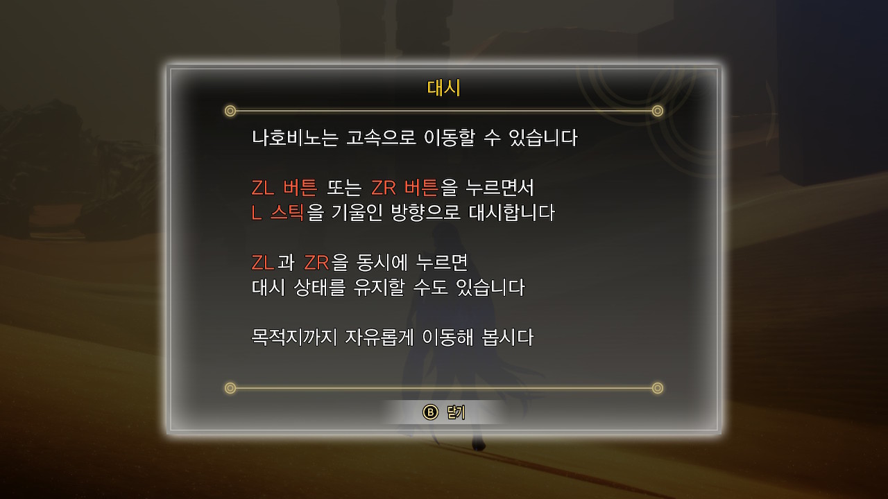 ZL이나 ZR등을 누르면 중이뼝 자세로 달리기를 시작함