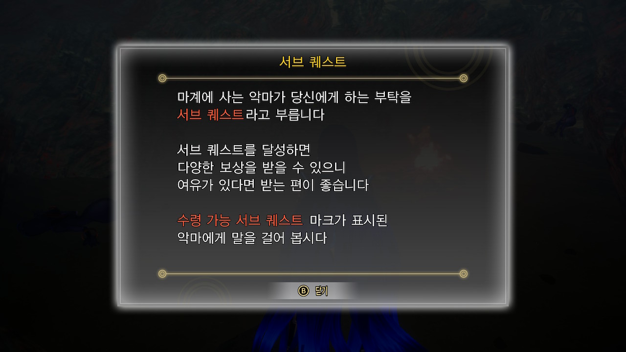 가끔 대화칸이 활성화된 악마들이 있는데 이런 악마들은 게임내에 전반적인 팁이나 배경 등을 알려줍니다.