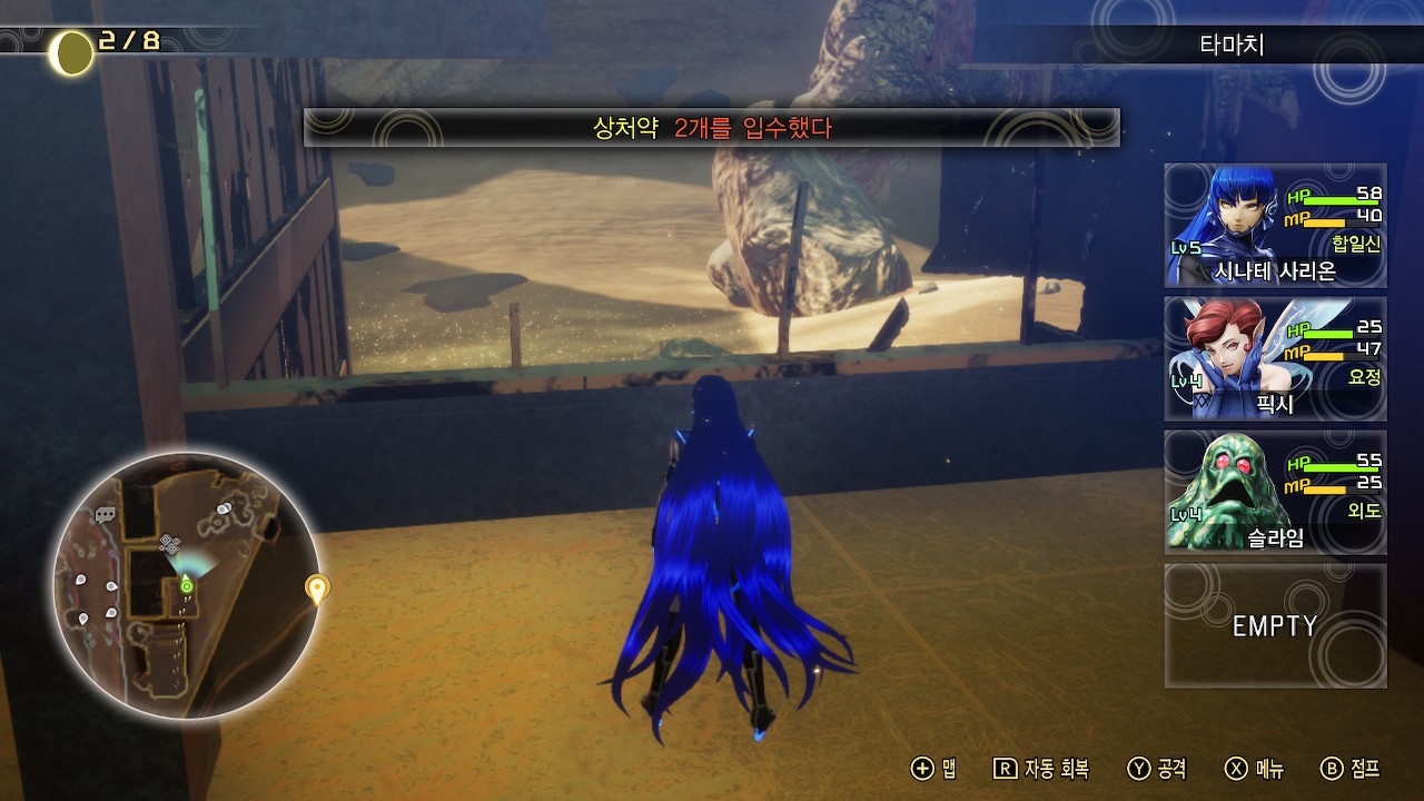 앞에 보이는 상자에서는 상처약 2개를 먹을 수 있는데, 이후에 만날 수 있는 악마영입에 쓰이기 때문에 쓰지 말고 보관합시다.