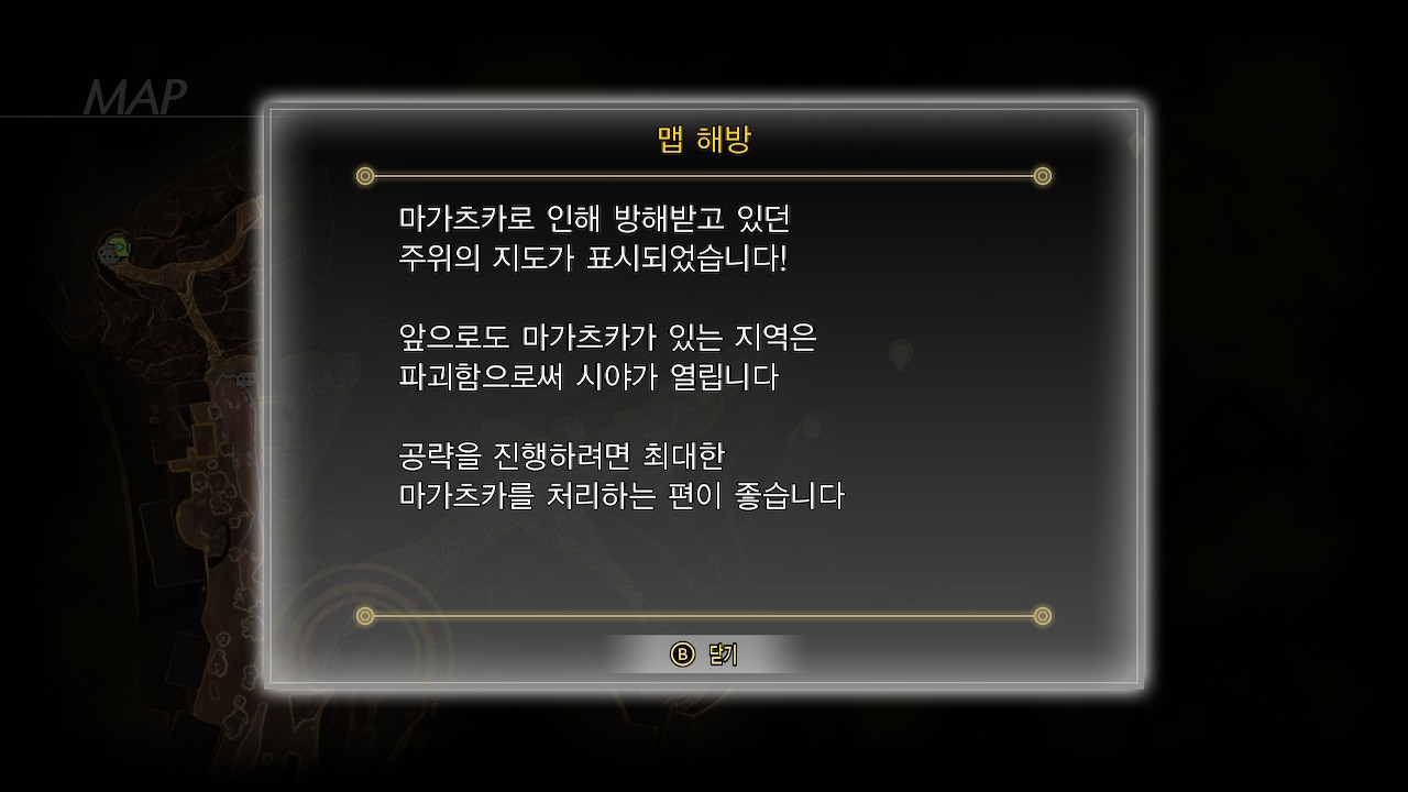 첫번째 마가츠카를 토벌하면 안개로 가려졌던 지역이 밝혀지고, 막혀있던 지역을 탐험할 수 있게 됩니다.