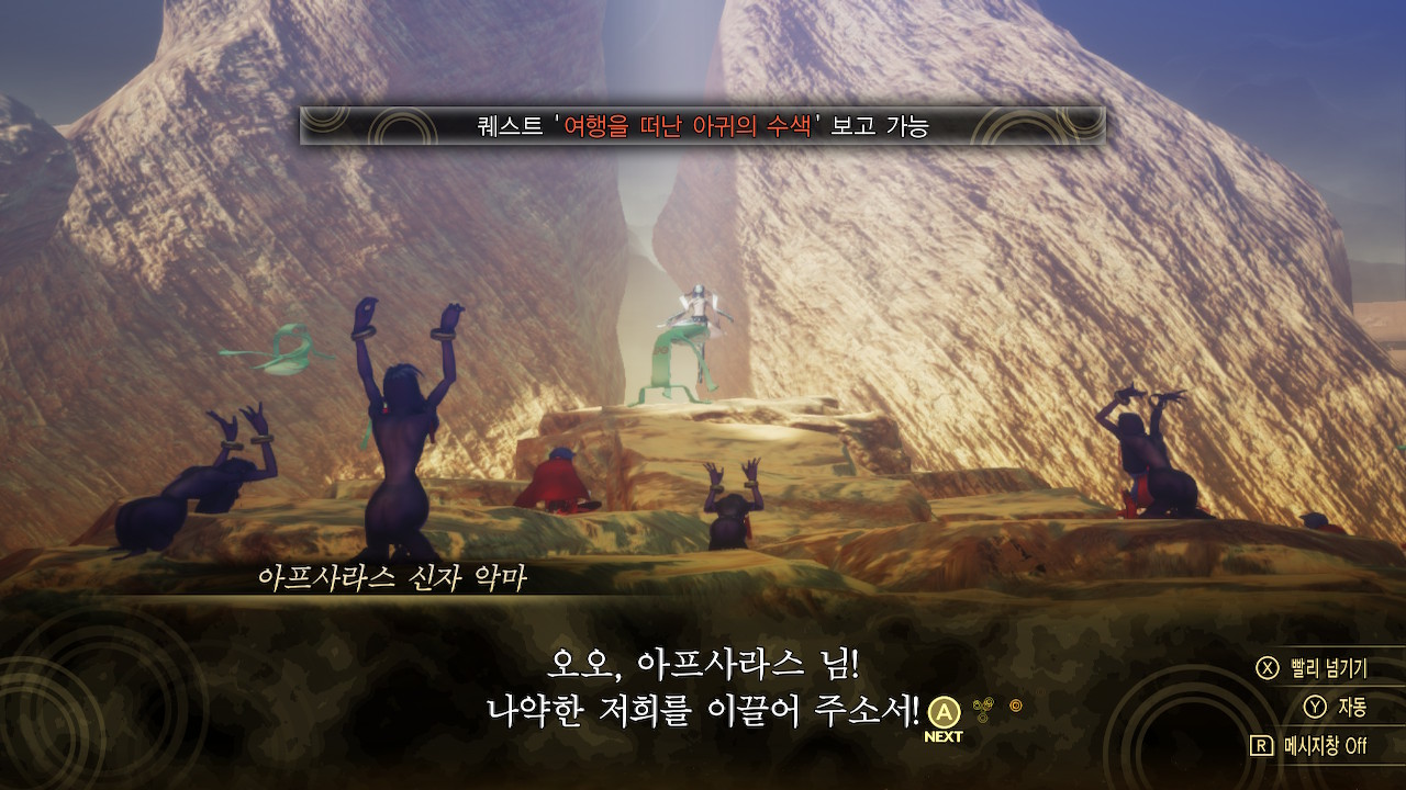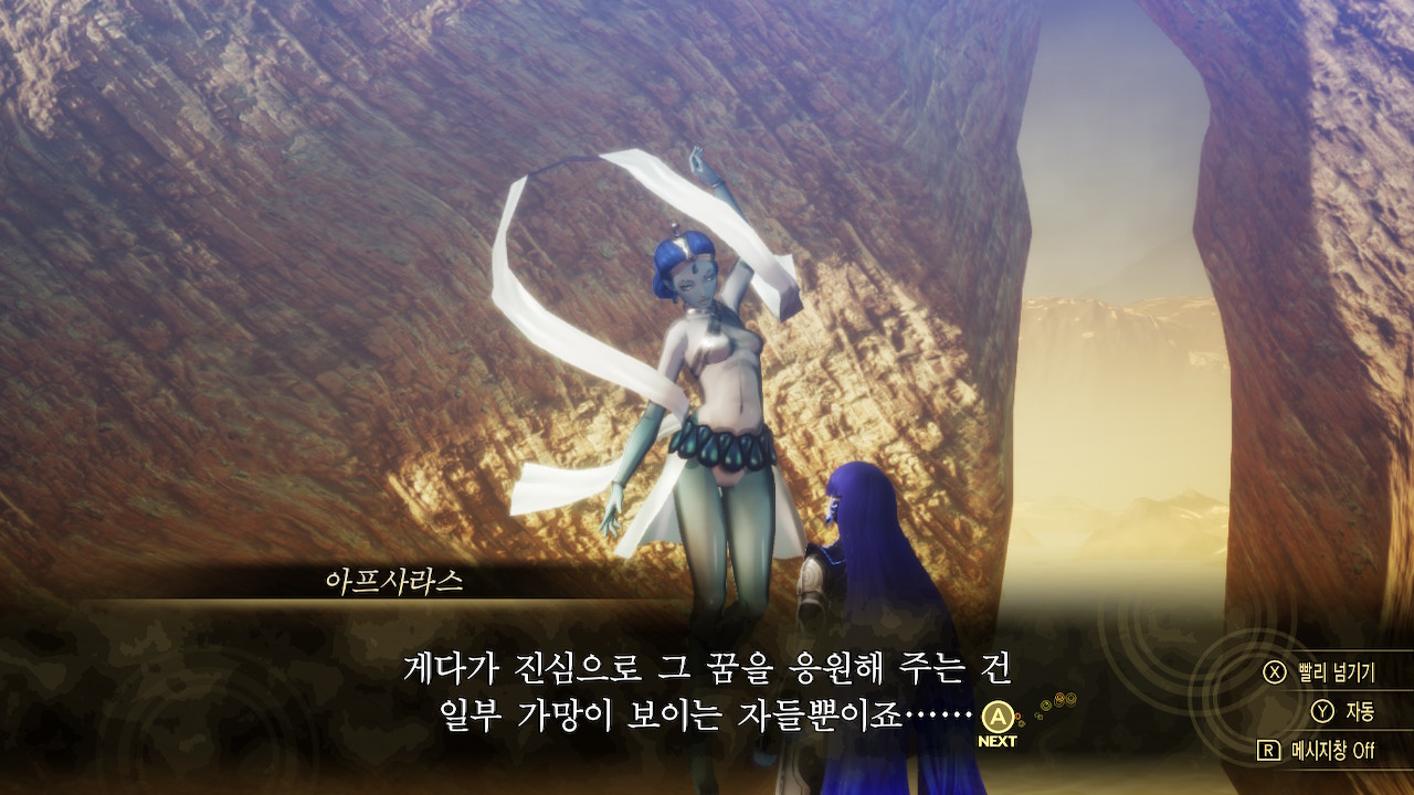 여기서 아프사라스의 편을 들으면 로우 성향이 증가, 랴난시의 편을 들어주면 카오스 성향이 증가합니다.