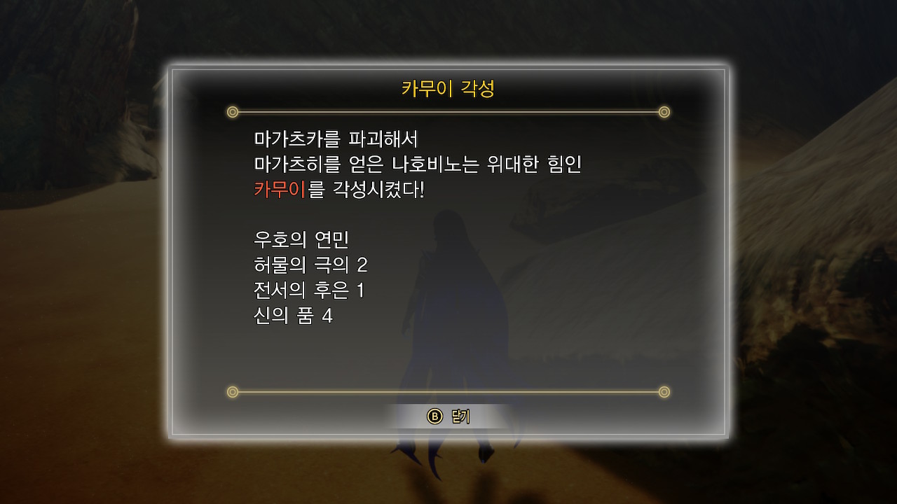 히드라를 잡고 난 후에 절벽쪽에 있는 미망을 말씀드렸었는데, 그 미망은 이 마가츠카를 잡고 난 후에 뛰어내려야 발견할 수 있습니다.