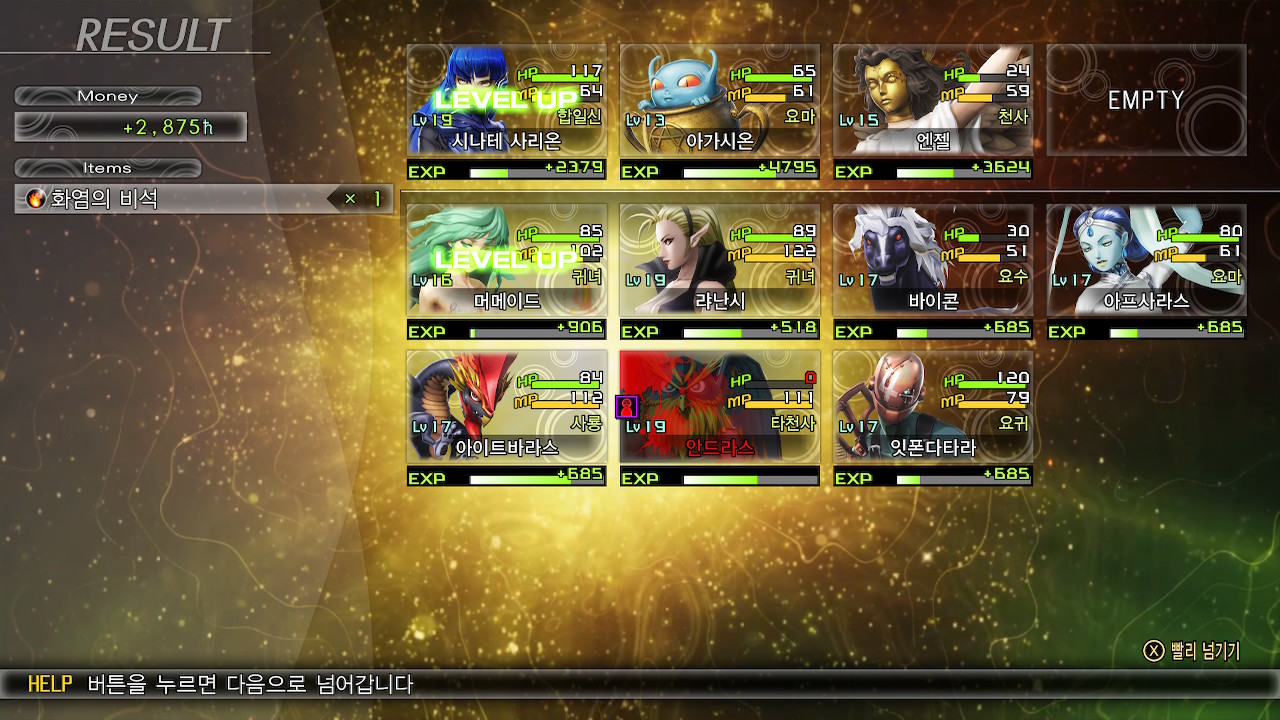 네코쇼군과 아가시온은 현재 합체할 수 있는 악마재료로 쓰기에는 애매해서 그냥 데리고 다니는 식충이들입니다