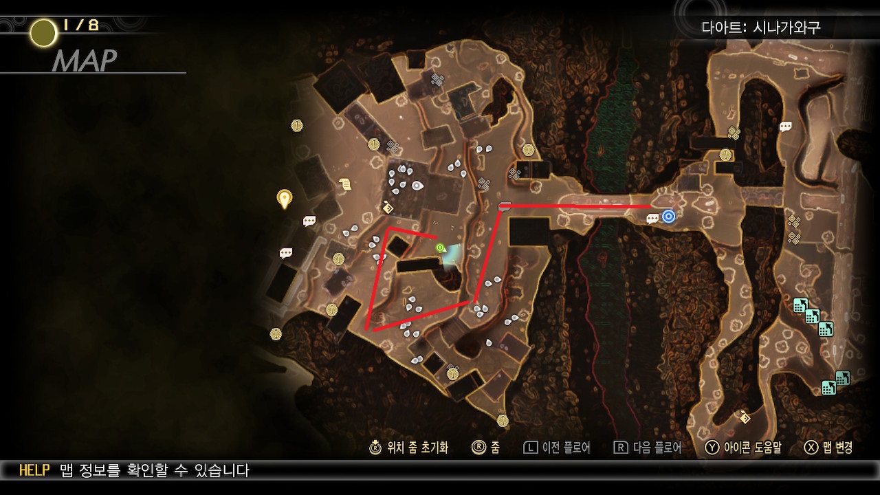 미니맵만 보면 야크시니의 허물을 얻으러 가는 길을 헤맬 수 있어서 이미지를 첨부합니다
