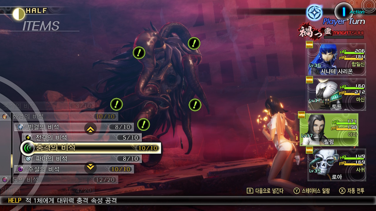 마가츠히 게이지를 채우고, 충격의 비석, 파마의 비석이 없다면 구매하시고, 세이브를 한 후 진행합니다