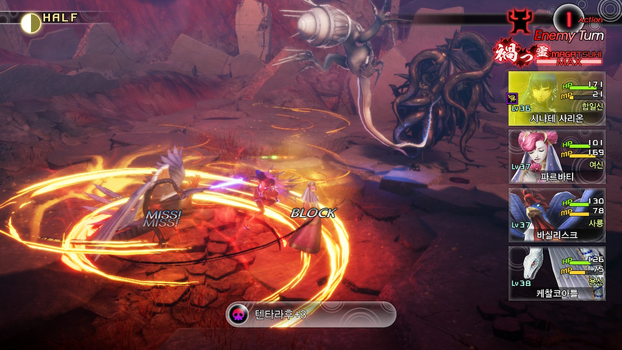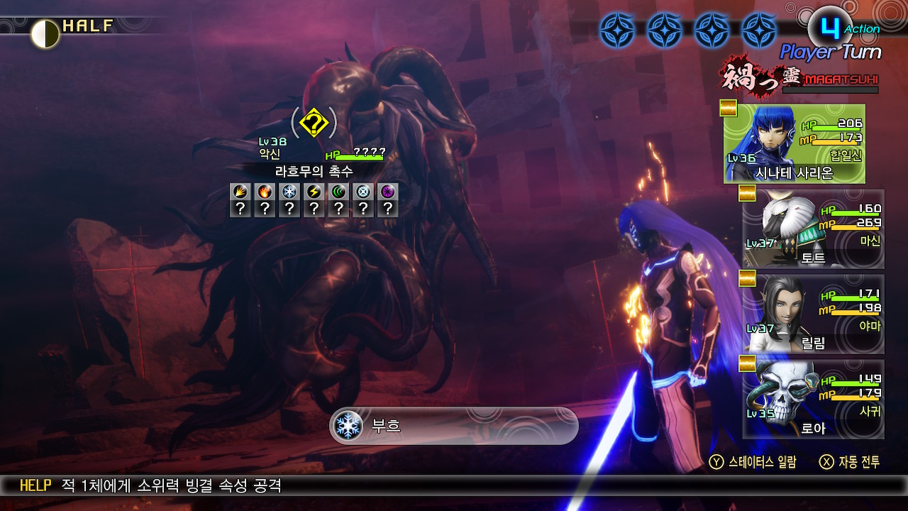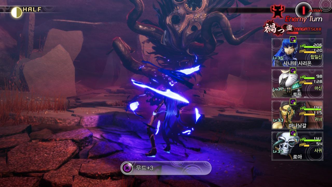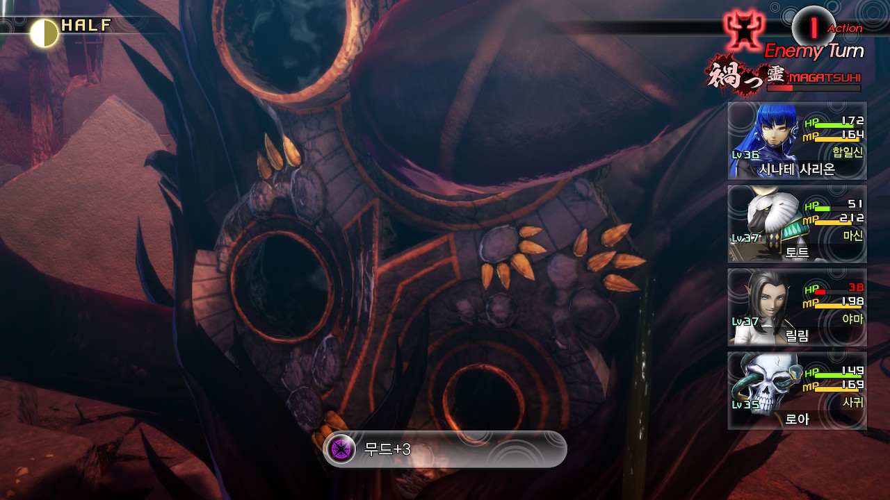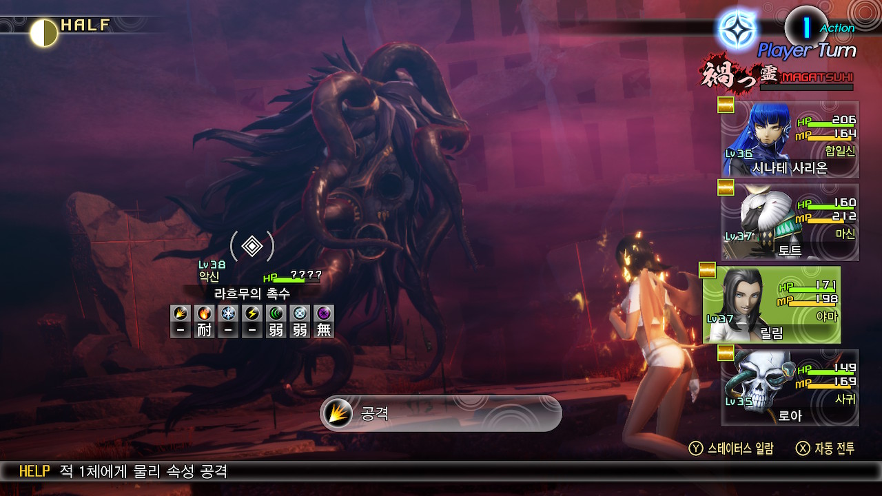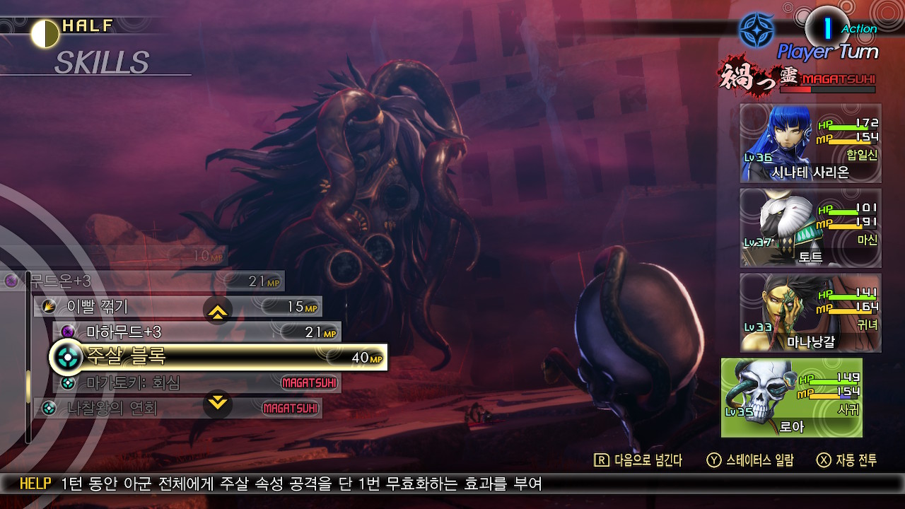 여러개의 촉수를 모두 박살내야 하는데, 어중간하게 골고루 치지말고 점사를 해야 합니다. 그러기 위해서는 되도록이면 파마, 충격 마법을 익힌 악마 위주로 파티를 꾸리되, 여유가 된다면 주인공에게 걸릴 디버프를 해제하면서 파티의 피를 관리할 수 있는 악마도 데려가세요.