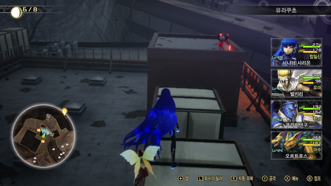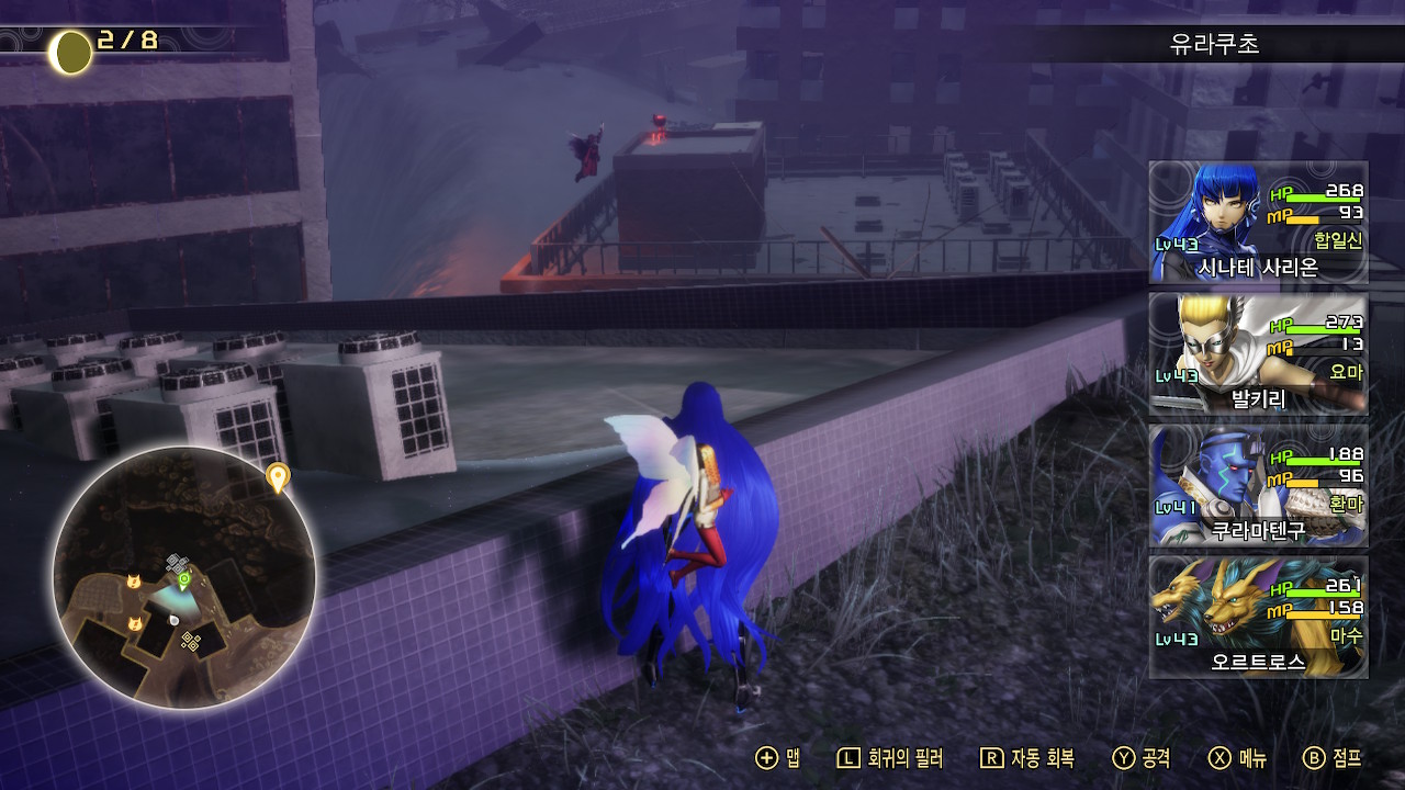 옥상에 물탱크인지 뭔지 알 수 없는 네모난 오브젝트가 있는 곳은, 스샷에서 보이는 것처럼 갑자기 악마들이 튀어나오곤 합니다. 싸우기 싫으면 옥상 중앙으로 다니지 말고 사이드로 가다가 이상한 소리가 들리면 바로 점프해서 물탱크 위로 올라가세요.