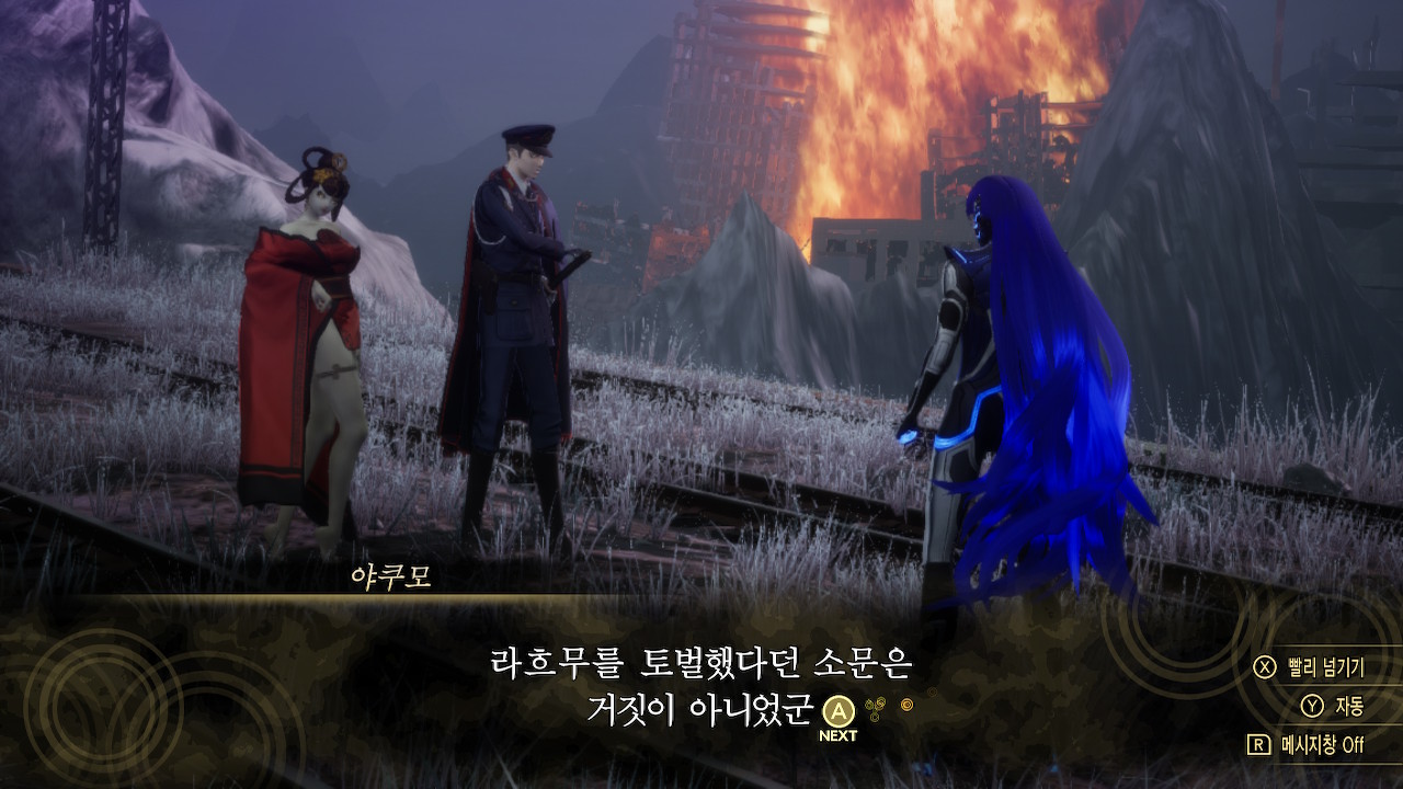 dlc없이 무난하게 진행했다 치면 야쿠모를 만났을때 플레이어의 레벨은 42~44쯤 됐을 것 같네요. 아마 그정도 레벨이면 야쿠모의 광역 물리공격을 맞고 한턴에 세명씩 사라지는 장면이 나올 수 있습니다.