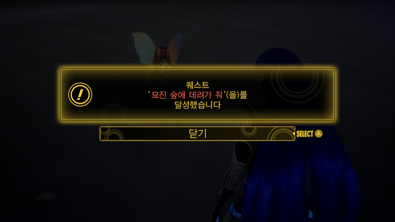 다시 선로로 돌아가서 북서쪽으로 이동하면, 화백 퀘스트-"묘진 숲에 데려가줘"가 완료됩니다
