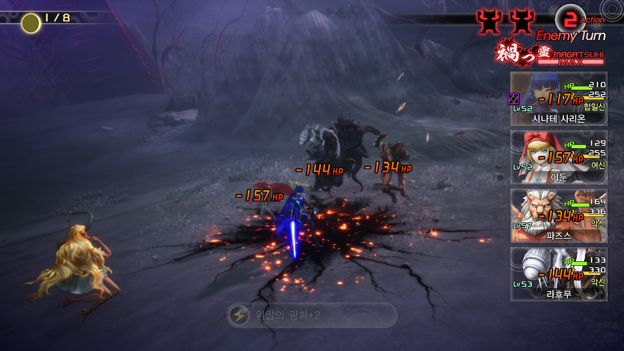 마가츠히 쓰고 난 후에 쓸 줄 알았는데, 싸우자마자 냅다 갈겨버리는 위압의 광휘