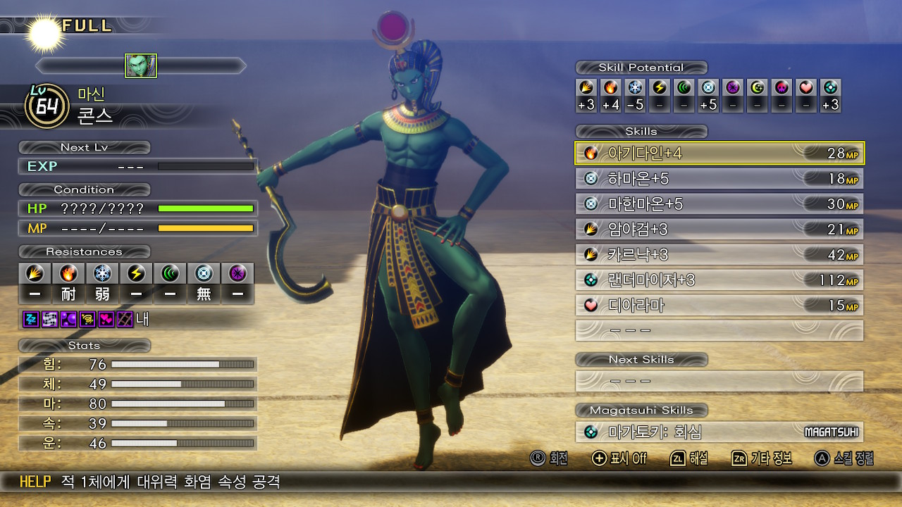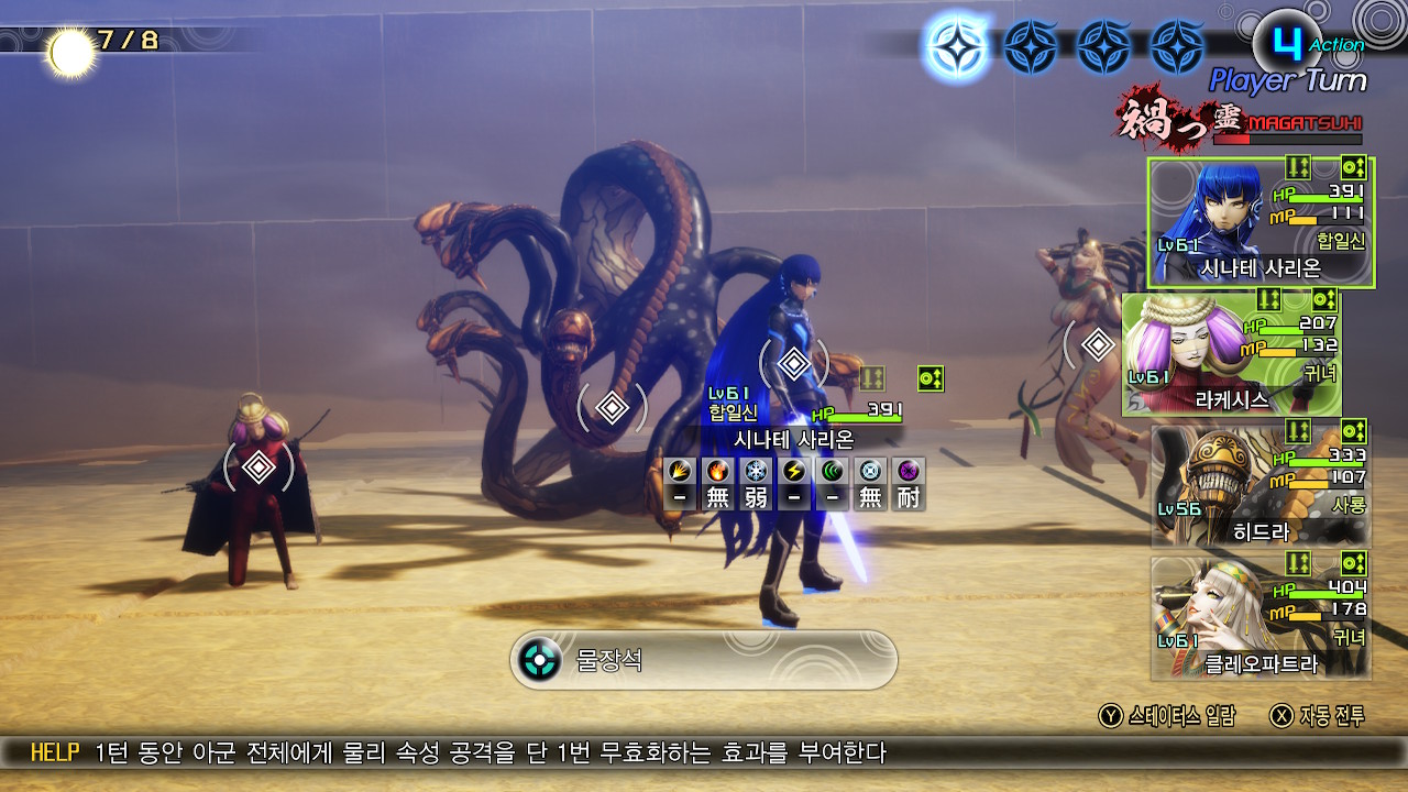 그외 속성 전체공격이 두개라서 장기전이 되면 다른걸 쓰는지 모르겠지만, 첫번째 마가츠히 사용턴에는 마하잔다인을 씁니다.