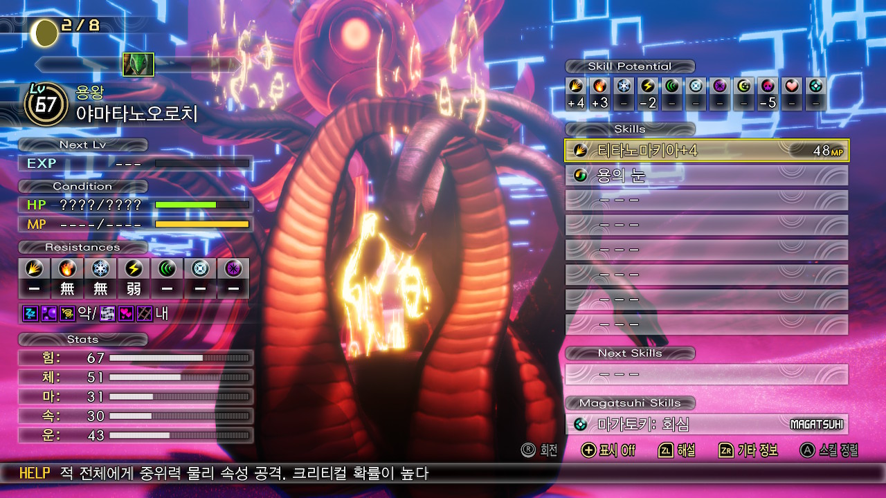 야마타노오로치의 레벨은 67, 약점은 번개