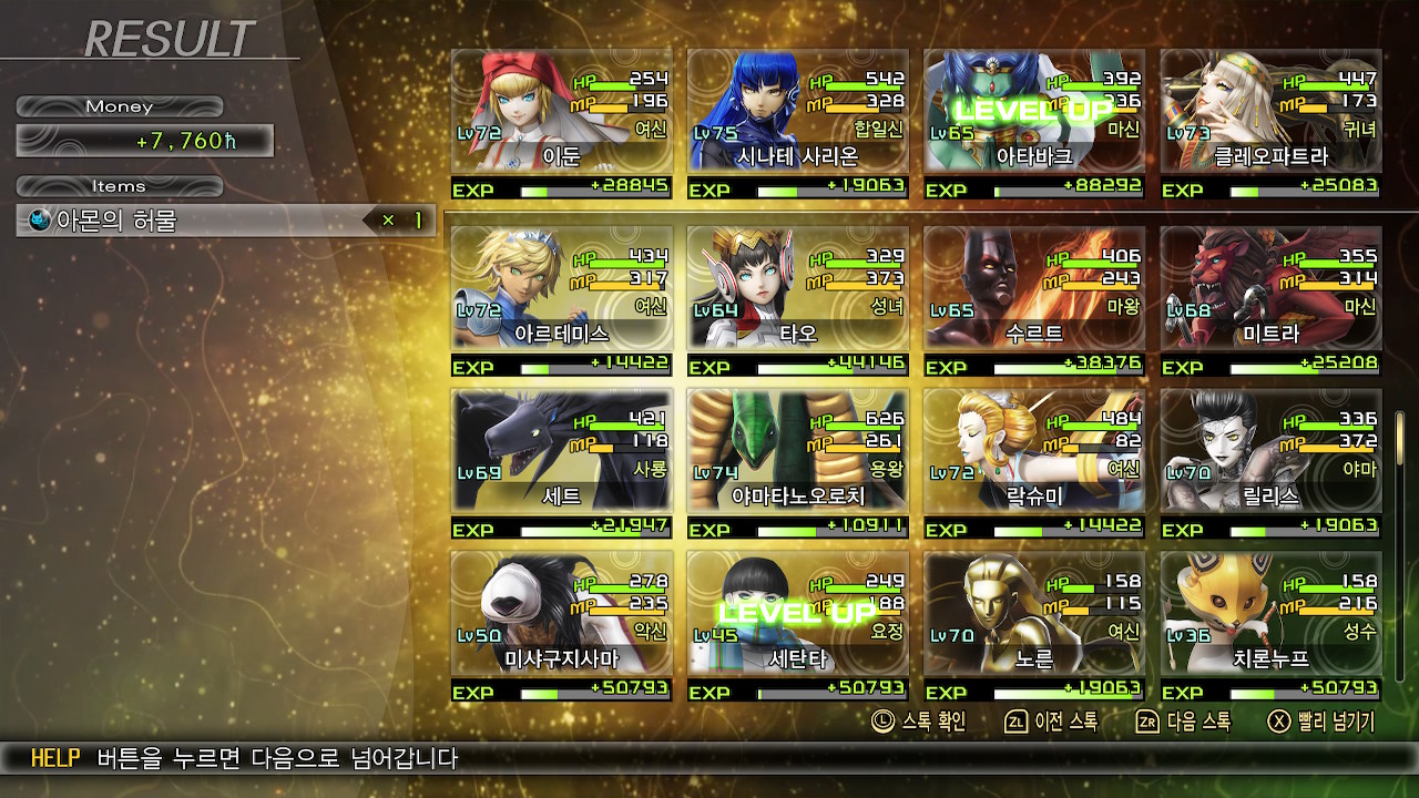 여기서 갑자기 레벨이 73으로 뛰네요