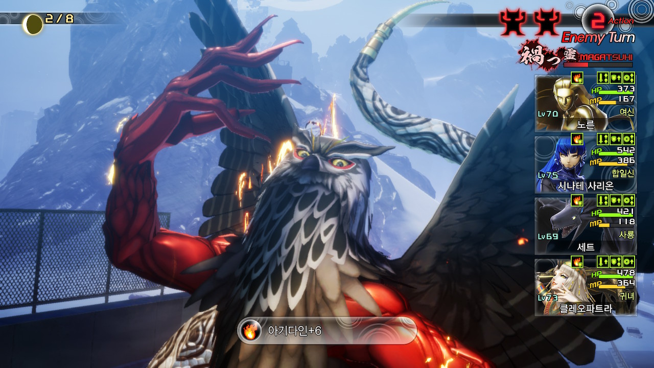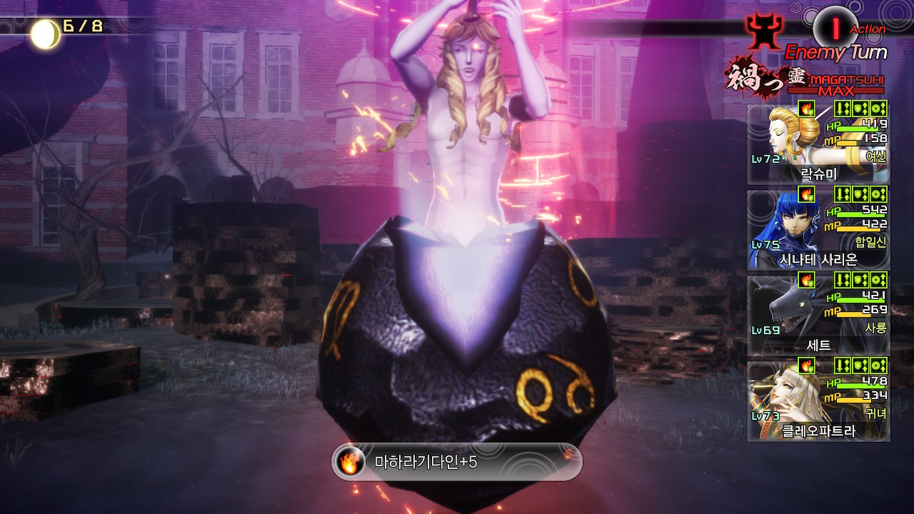 마가츠히를 사용한 턴에는 미트라스가 마하라기다인을 사용합니다.