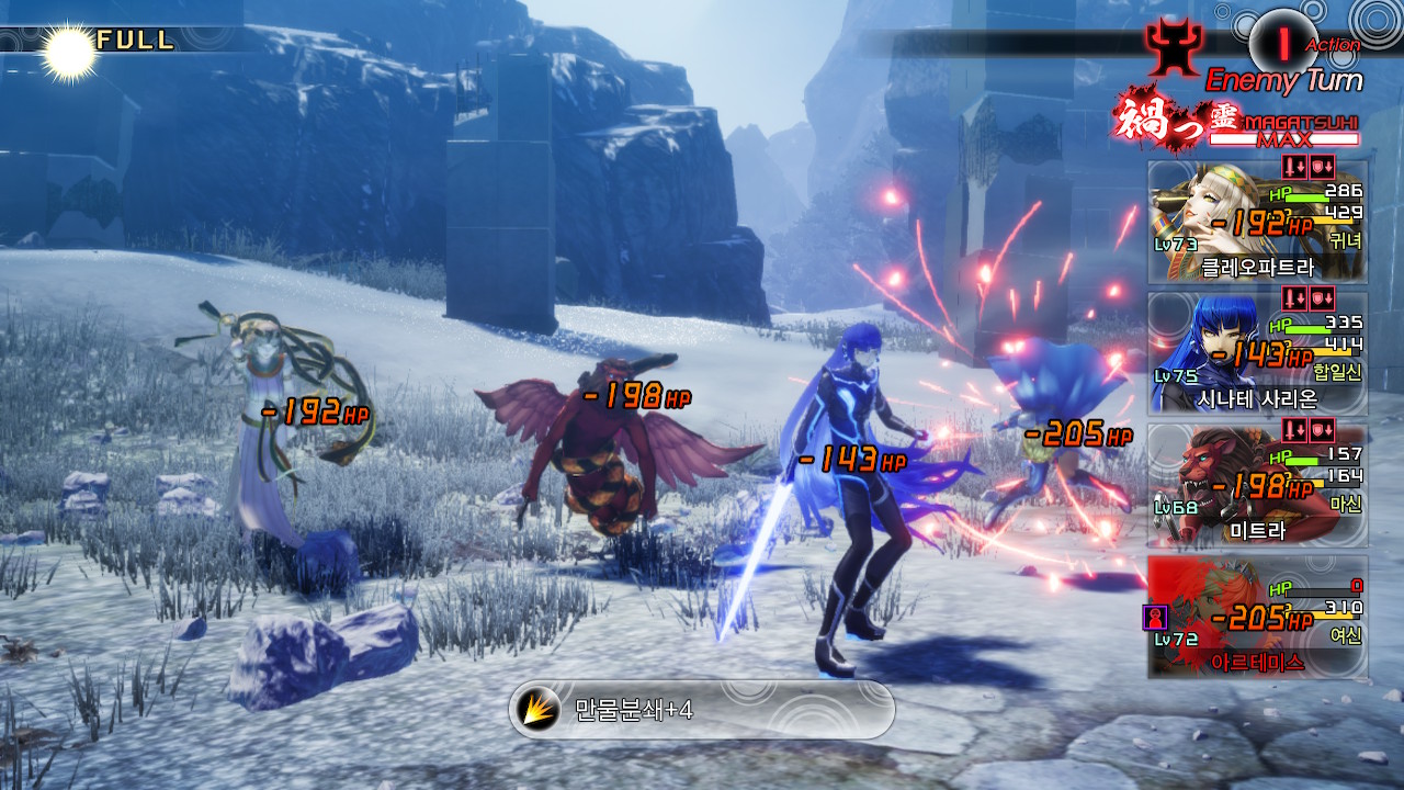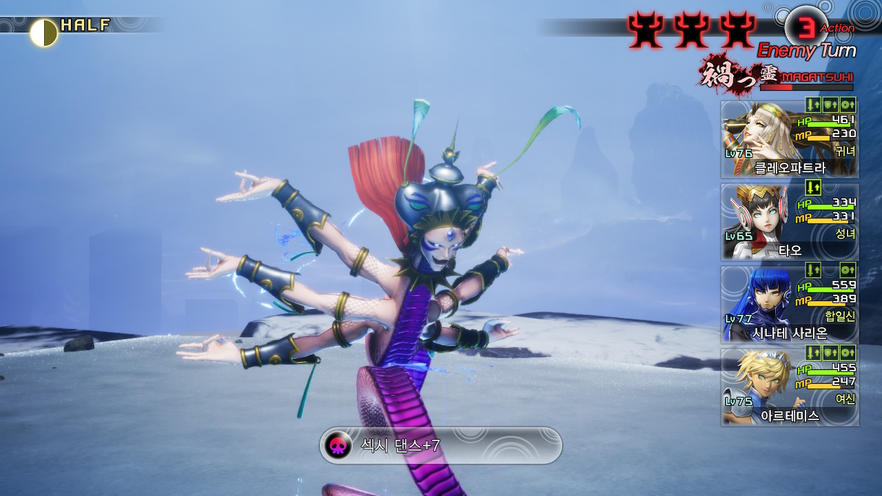 플레이어의 레벨이 낮으면, 시바와의 전투가 시작되자마자 시바의 전체공격에 동료악마 두세마리가 한꺼번에 사라질 수 있습니다.(레벨이 낮으면 후턴이 잡혀서 전체공격을 맞는건지, 그냥 레벨이 낮으면 이벤트성으로 쳐맞는건지는 모르겠지만, 1회차때 제가 파티원을 바꿔가면서 입장만 해봤을때는, 계속 후턴잡히고 전체공격을 맞았습니다)