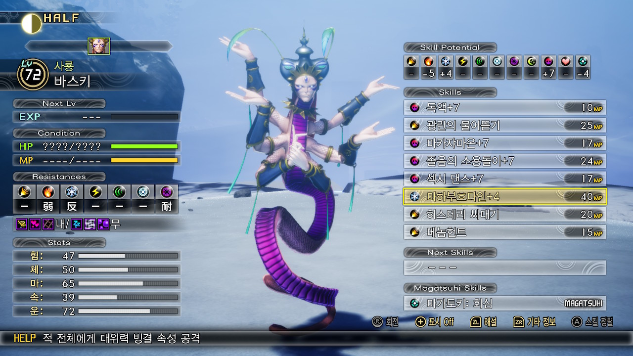 바스키의 약점은 불, 상태이상 중 수면, ?, 독은 무효입니다.