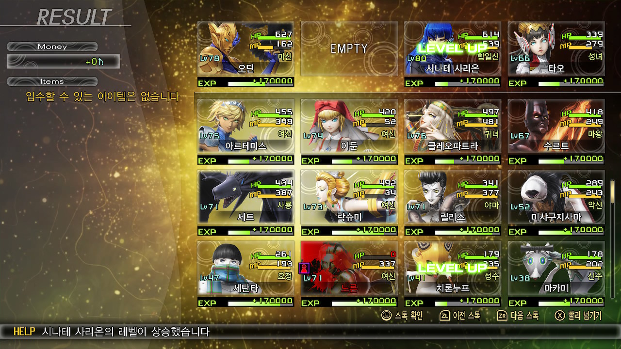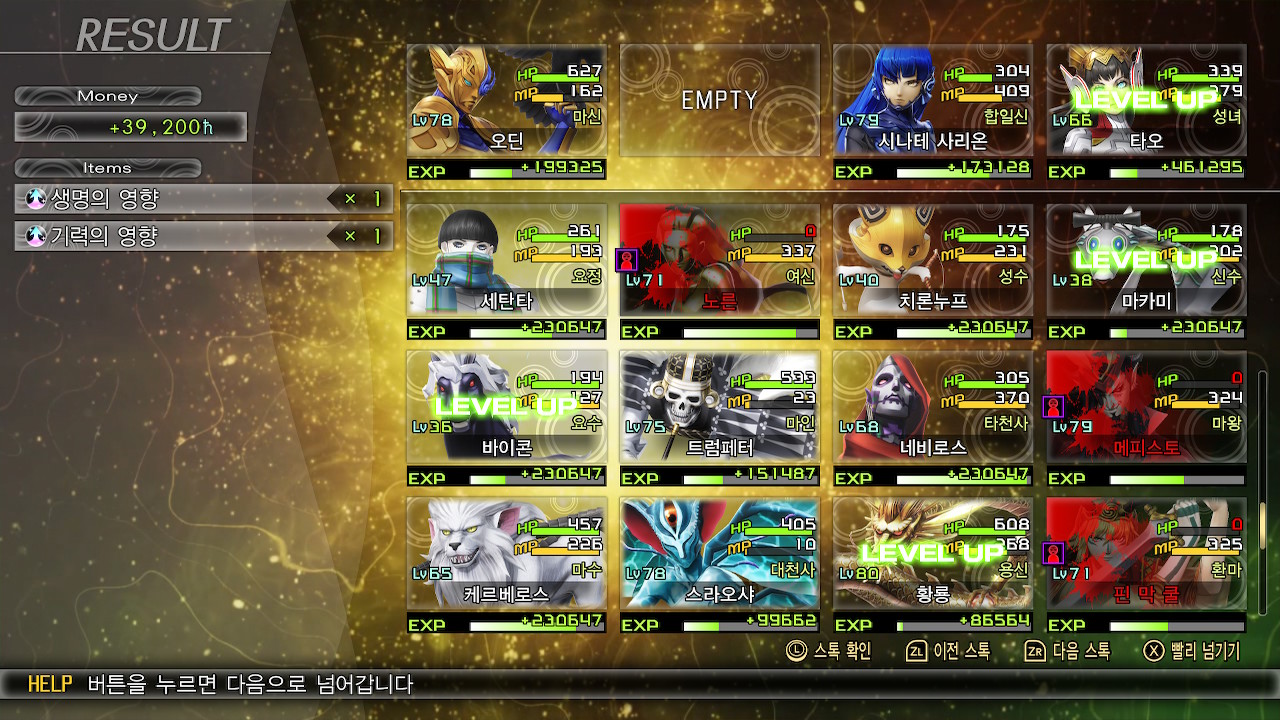 일단 복음서를 사용해서 주인공 레벨을 최대한 올렸다면, 이제 악마들을 새로 뽑은 다음에 적절하게 마도서와 악마상을 이용해서 레벨링을 합시다.