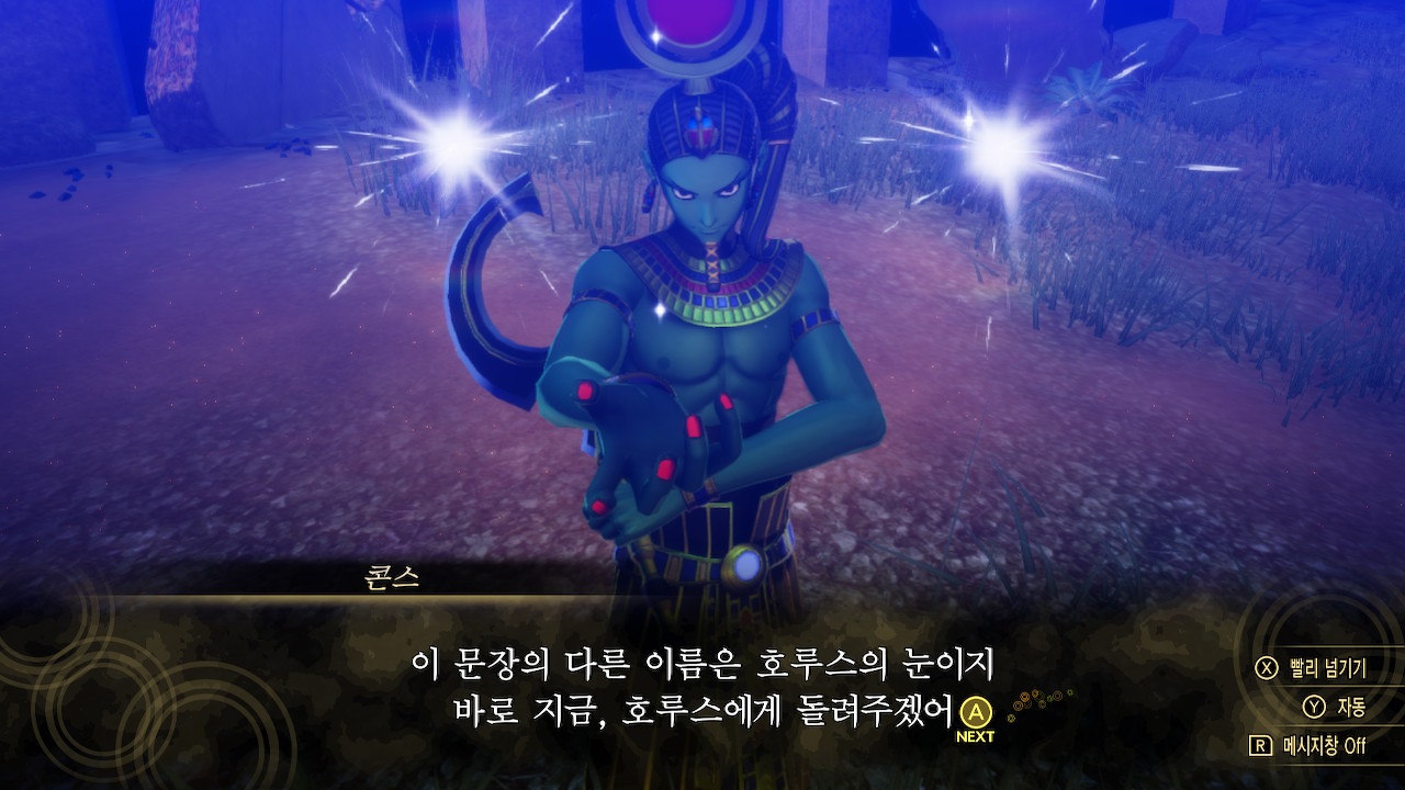 요정마을 이지스에게서 받을 수 있는, 3번째 맵에서 호루스를 잡아야 하는 퀘스트 클리어>이집트지부의 상태를 살펴라>콘스를 살려주는 선택>날개 달린 태양 쟁탈전 퀘스트 클리어+요정 마을에 있는 안경잽이가 더이상 새로운 스크립트를 뱉지 않는 상태라는걸 가정하고 작성합니다.