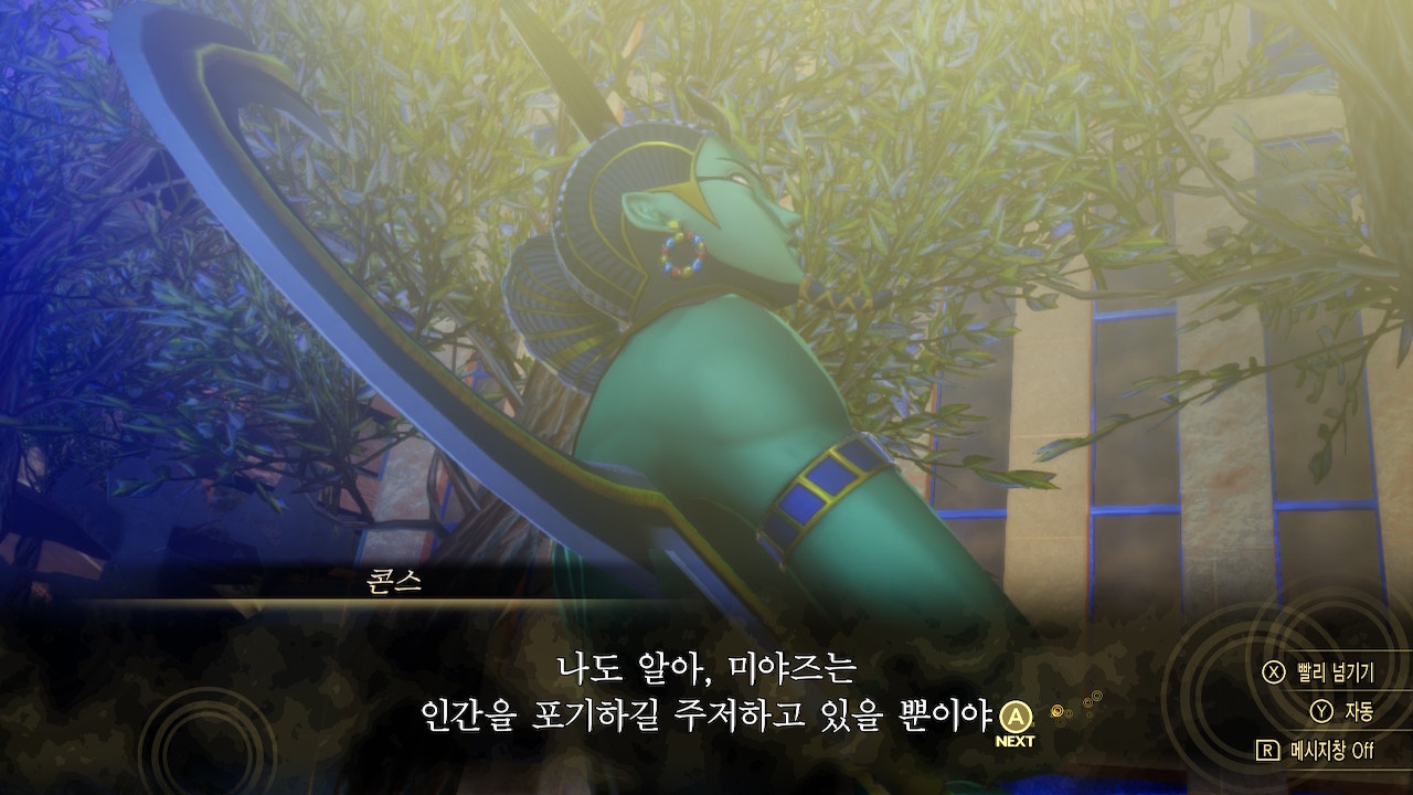 스크롤 심볼이 있는 쪽으로 이동해서 이지스와 대화를 합니다.