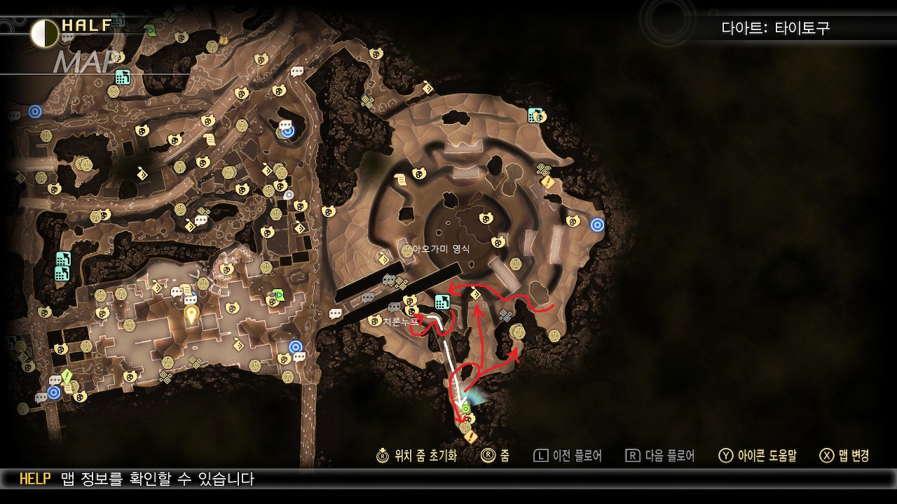 붉은색 화살표 : 고지대에서 낙하해서 먹어야 하는 미망 2체