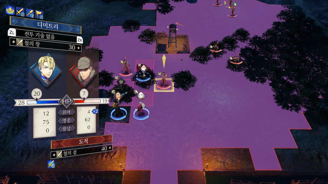 이후 디미트리의 공격범위에 유의하면서, 여유가 된다면 메르세데스에게 양념을 칩시다.