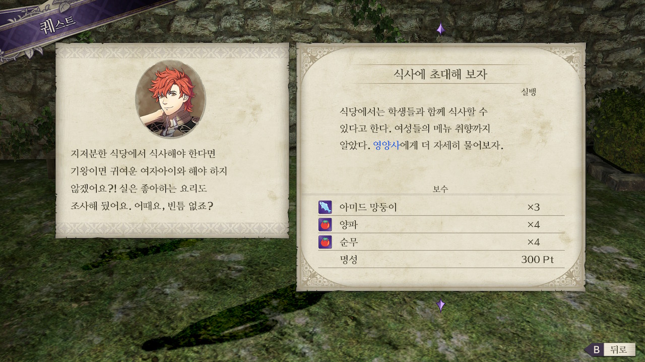 졸린다였다 뭐였나를 선택하면 린하르트의 호감도 상승.