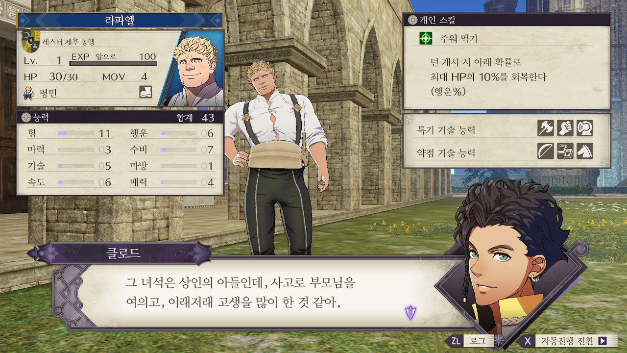 타반의 학생들을 스카우트할 수 있는데, 저는 딜탱으로 페르디난트와 실뱅, 힐러로 쓸 린하르트(마리안을 힐러로 써도 되지만 힐러로 키우는 것보다 다크나이트로 육성하는걸 추천), 시릴(용도가 조금 다르지만 레오니를 써도 됩니다), 샤미아(스나이퍼), 페트라 또는 잉그리트(회피탱)를 영입할 생각입니다.