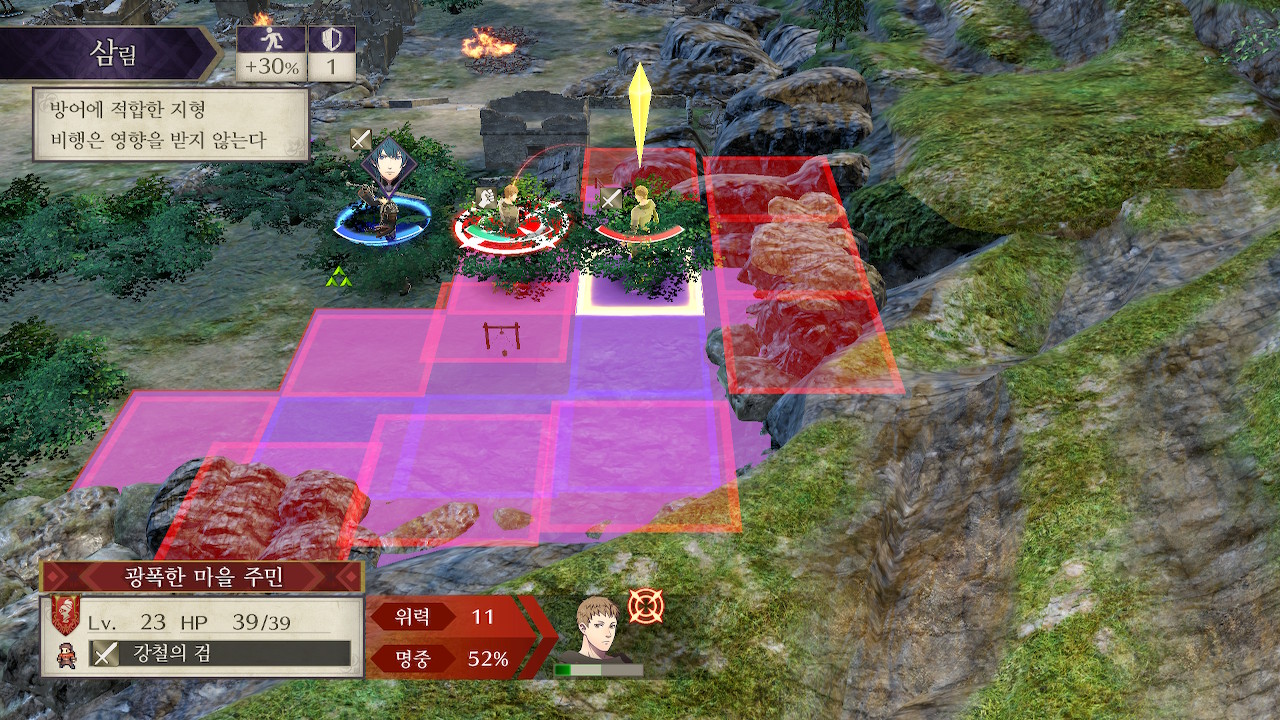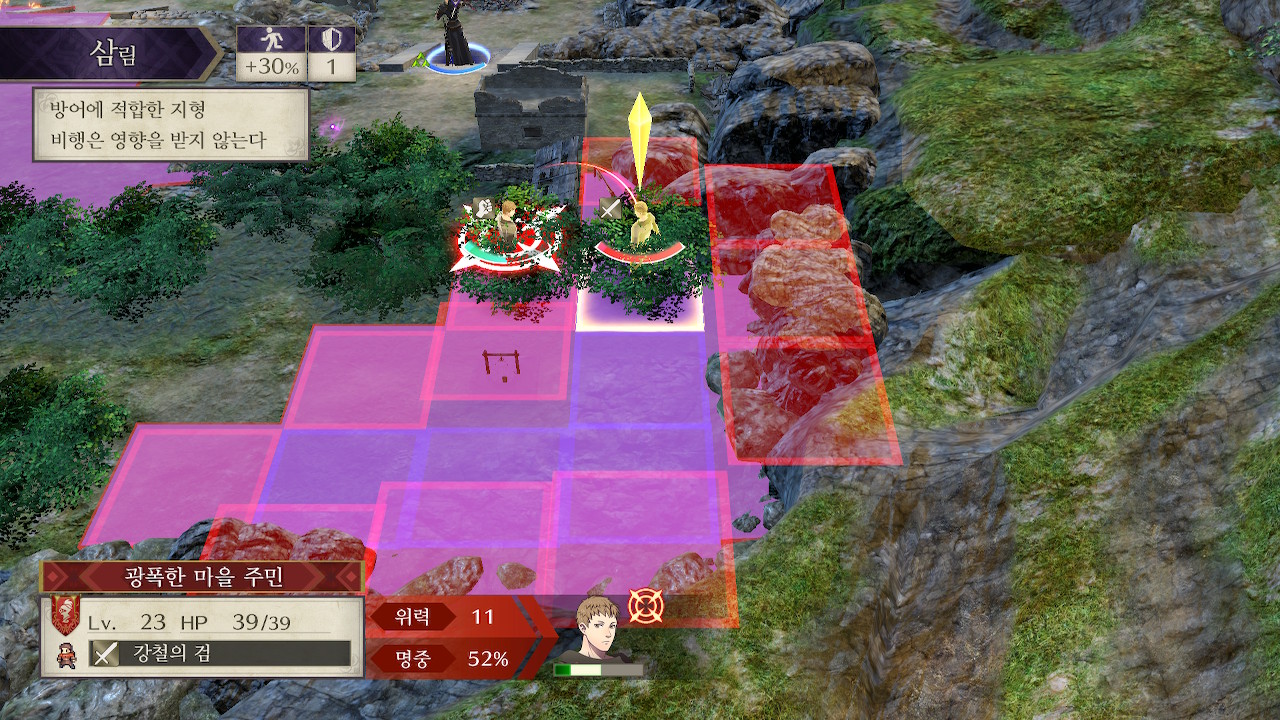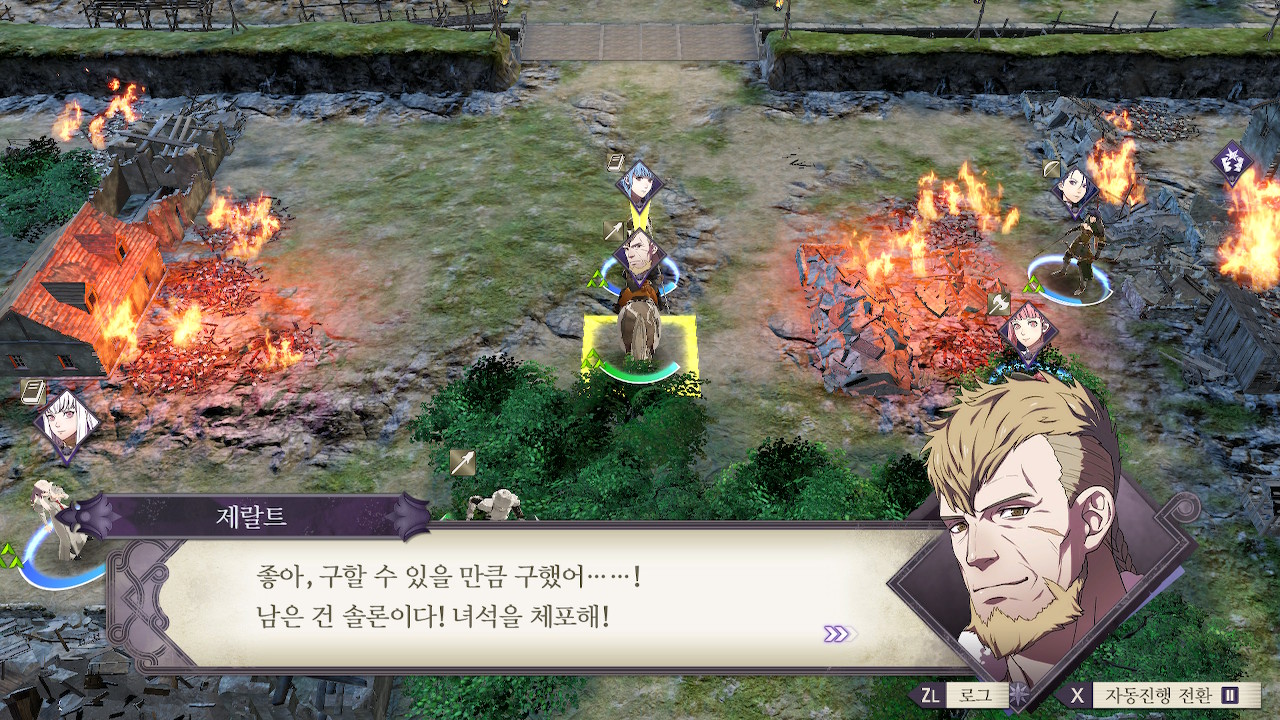 이번 전투의 특이사항은 마을 주민들을 구출해야 한다는 것입니다. 본능적으로(?) 빨리 구출하려는 경우가 많을텐데, 그런 식으로 하게되면 제랄트때문에 게임이 망할 수 있습니다. 따라서 아군 진군 속도에 맞춰서 주민을 구출하는걸 추천합니다.