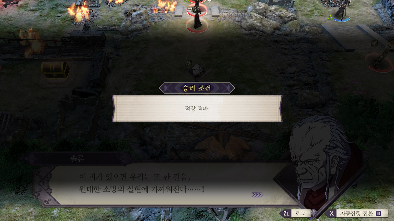 전투 중간쯤(?)에 적 전멸에서 적장(솔론) 격파로 승리 조건이 바뀝니다.