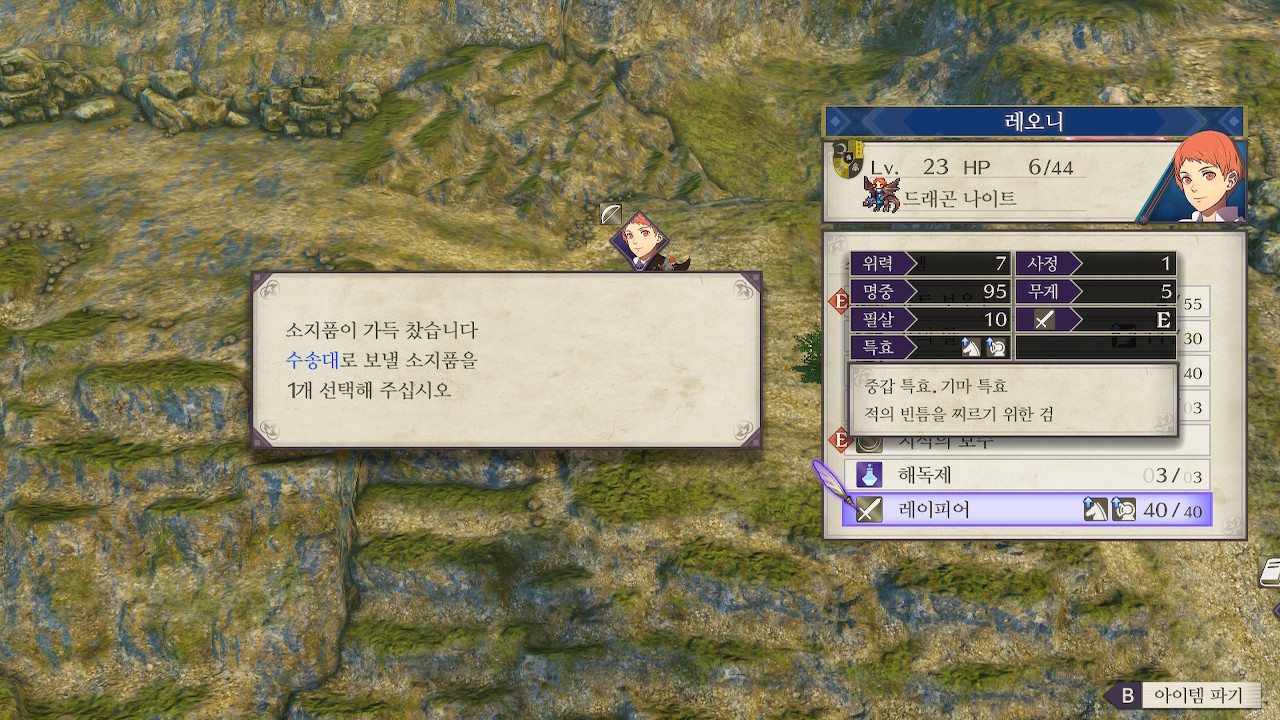 특정 적군으로부터 경험의 보주, 레이피어 획득 가능