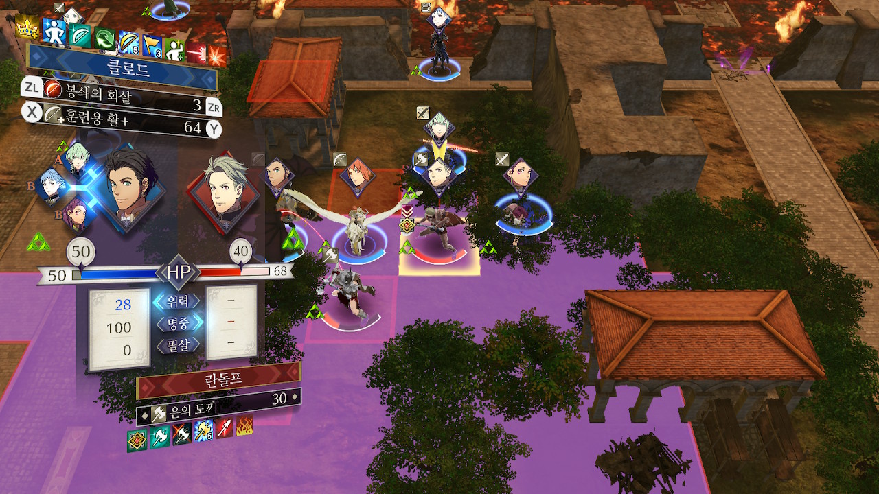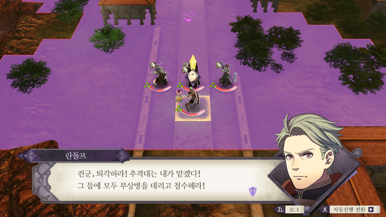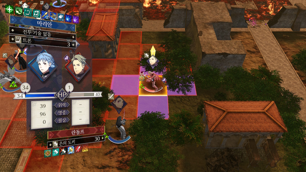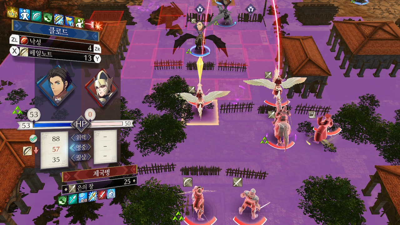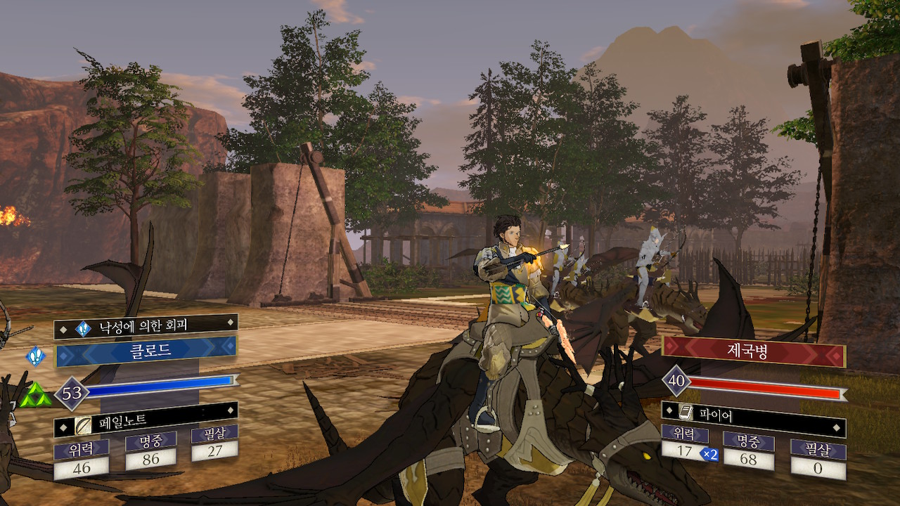 소마npc와 함께 제국병에게 접근하다보면 적 페가수스 나이트 2기와 마주치게 되는데, 비병 두마리를 바로 자를 수 있다면 잘라주시고, 그게 아니면 일단 계략으로 묶고, 확실하게 잡을 수 있는 적군만 잡습니다.
