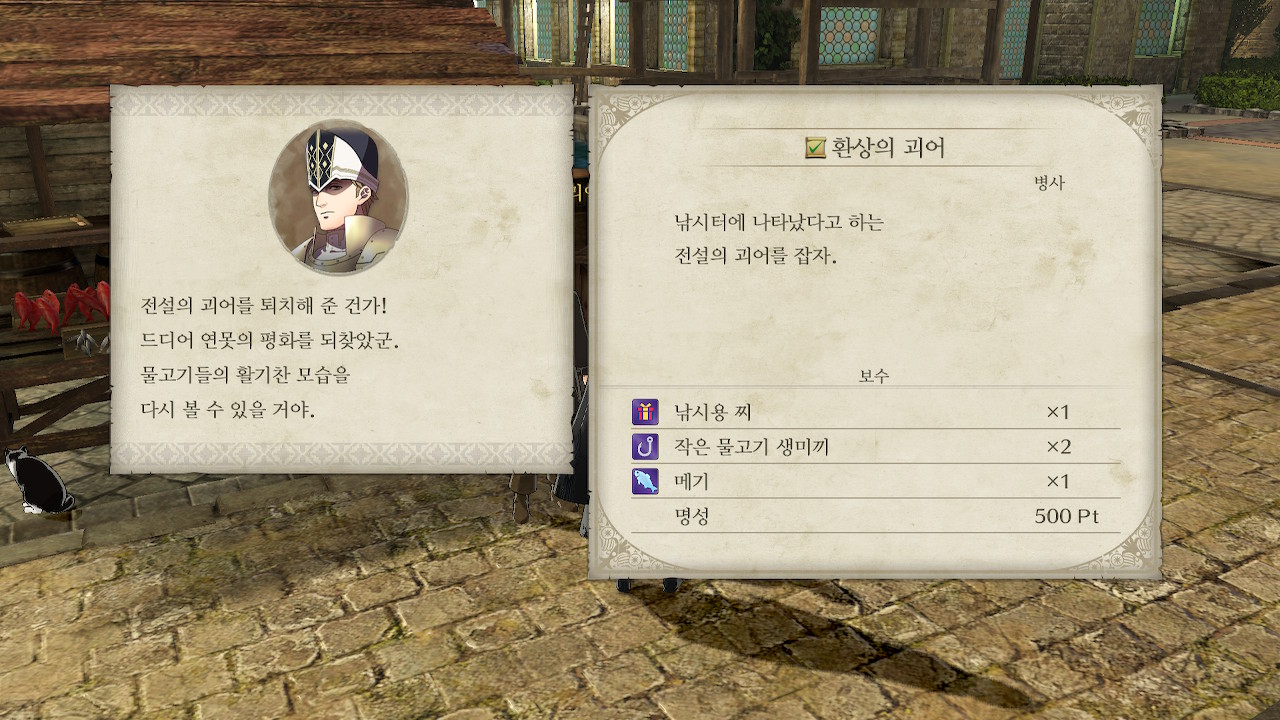 낚시터 사장에게 퀘스트를 받고, 보라색 물고기를 낚아봅시다