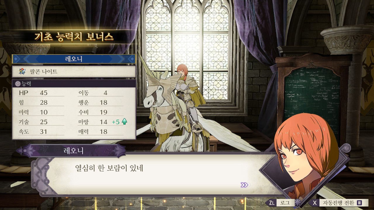 중갑교실로 검술 C를 찍고 팔콘 나이트로 전직한 레오니