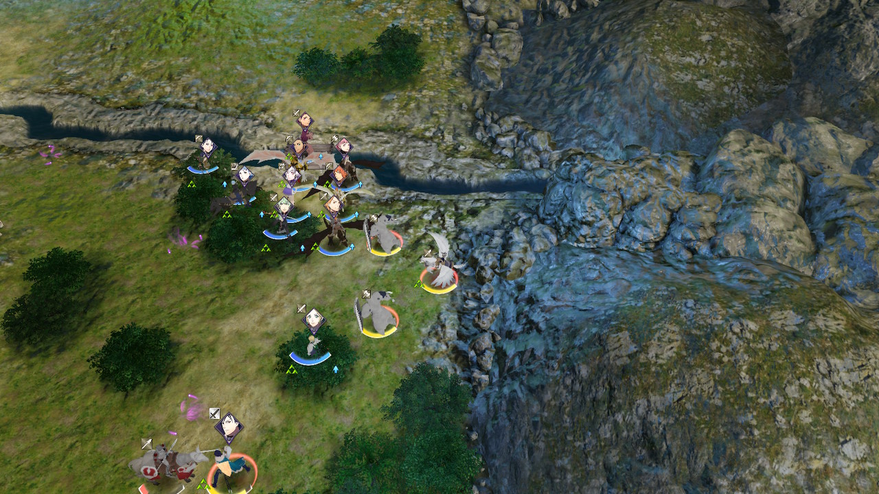 북쪽 작은 다리 근처에 중갑병 한마리만 자르고, 시작하자마자 아군을 왕국군 측으로 이동시킬 생각이라서 우측에는 기동성이 딸리는 유닛을, 좌측에는 비병들을 배치했습니다.