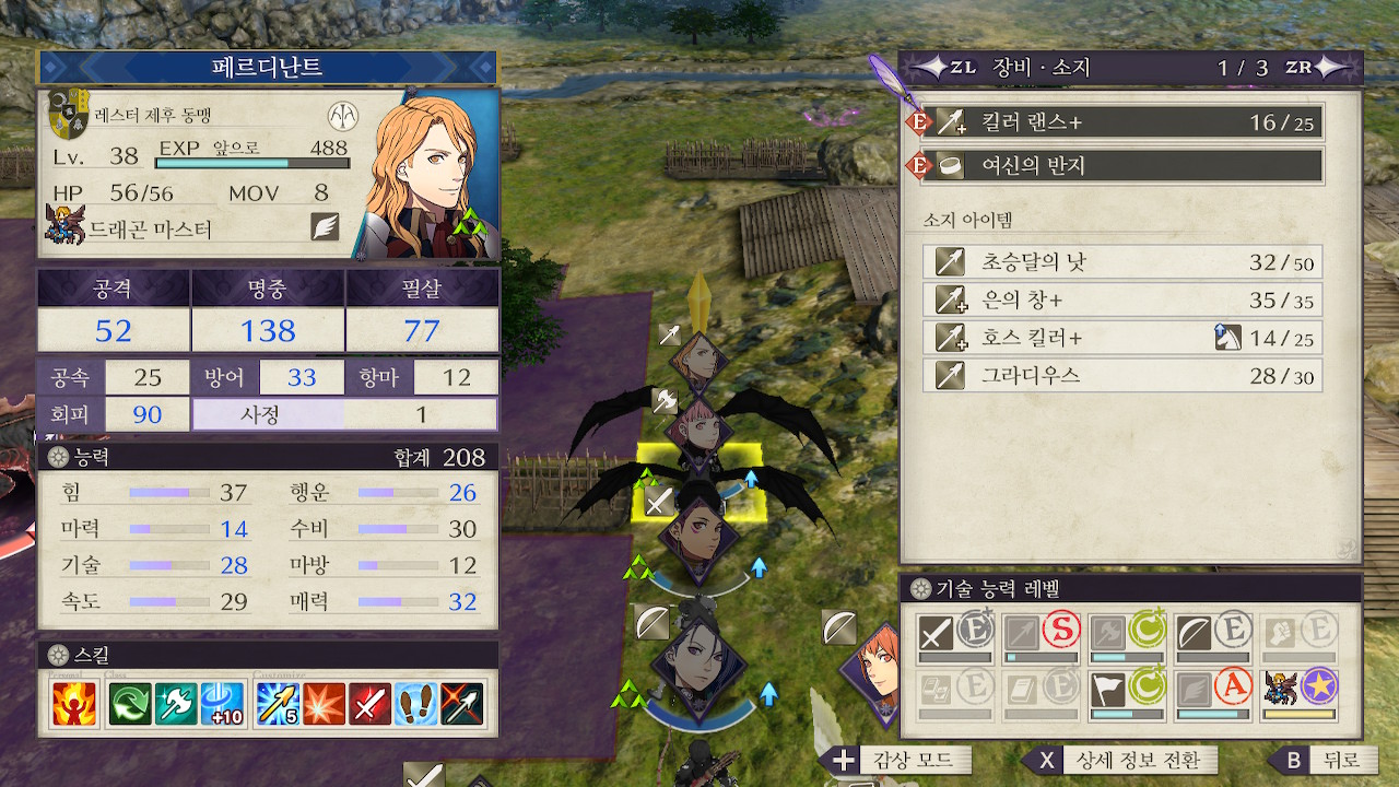 반지는 두개를 들고 다니는데, 숏보우를 쥐어주고 회피탱으로 쓸 때는 회피의 반지를 사용하고(사실 숏보우를 들면 근거리 반격도 필요 없는데, 활 S+를 못찍어서 그냥 넣어놓은 상태입니다), 공격적으로 굴릴 때는 필살의 반지를 쓰면 됩니다.