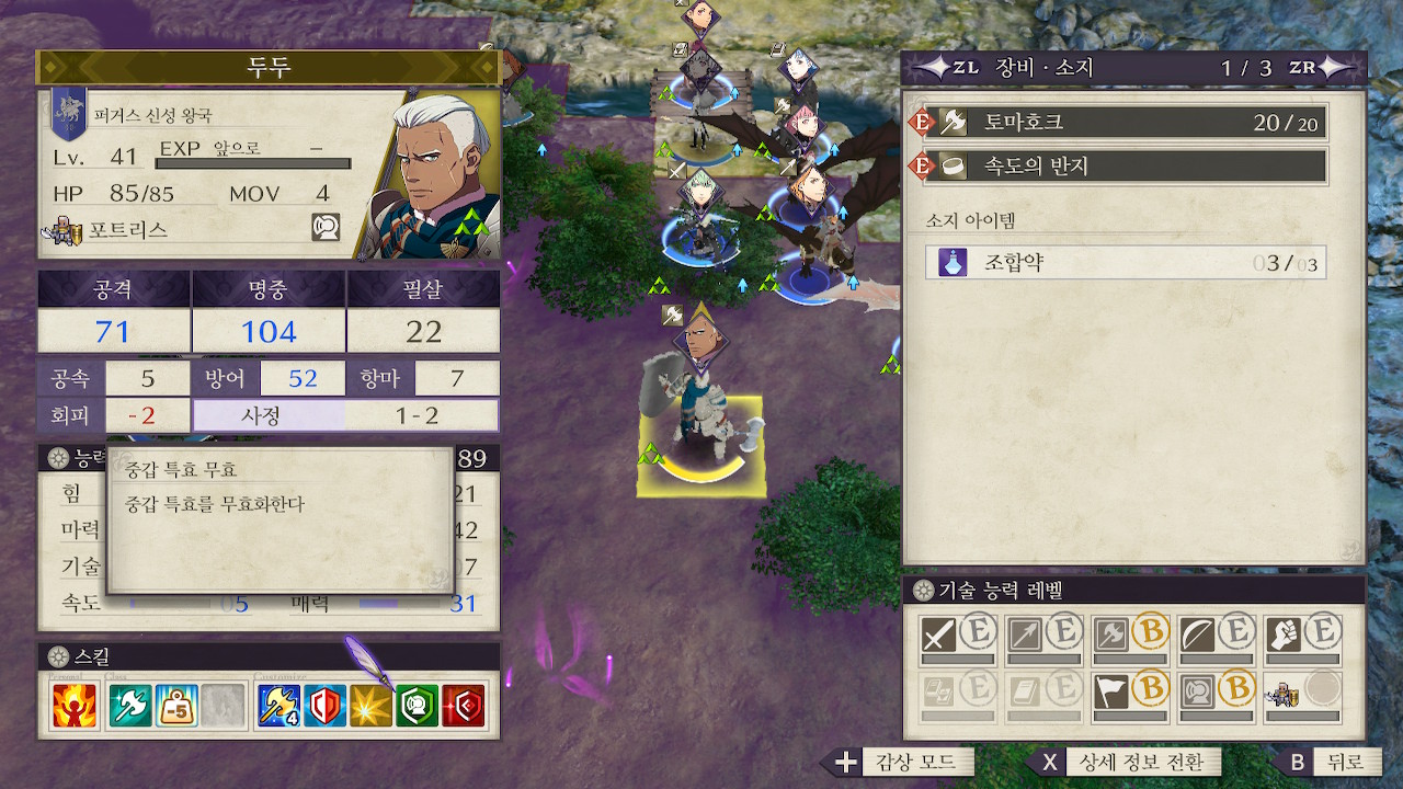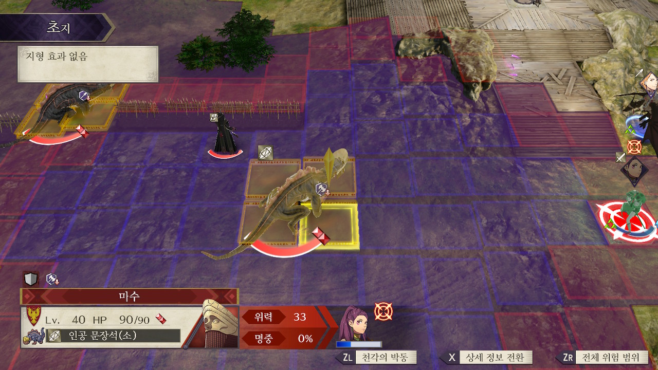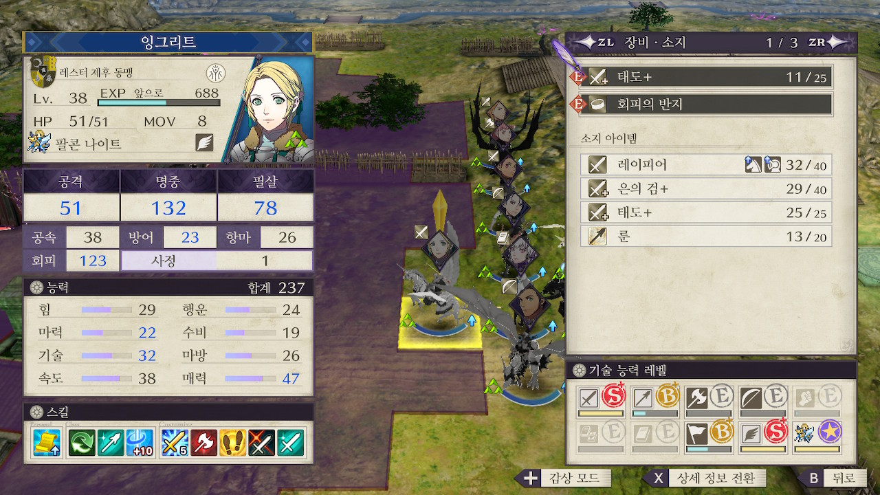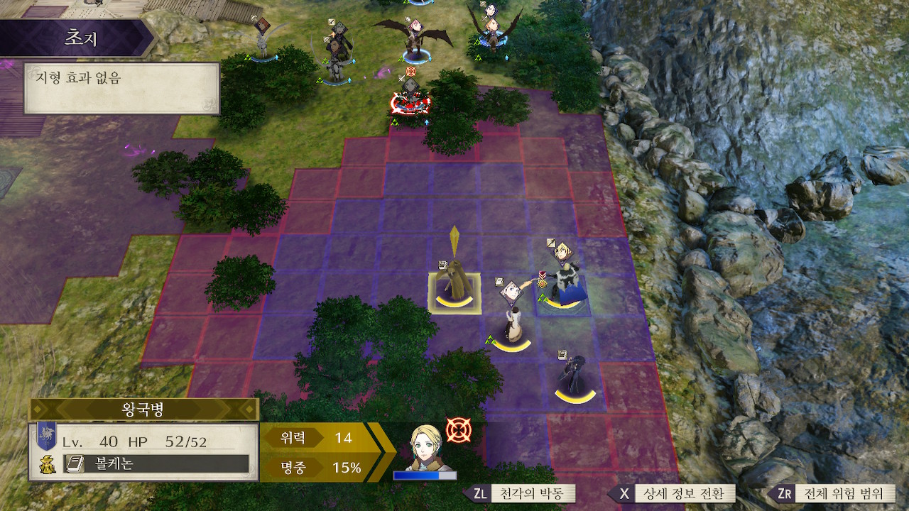팔콘 나이트 잉그리트를 수풀로 이동시킨 후 내리기, 경계 태세 발동.