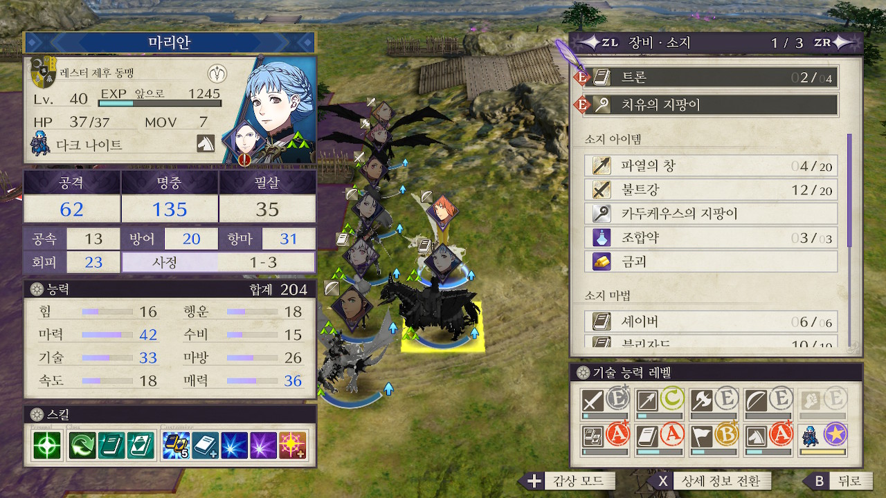 경험상 마리안을 다크 나이트로 만들었을 때 이동거리가 문제된 경우가 없어서, 저는 안씁니다. 그레모리하고 스왑할때는 의미가 있겠네요.
